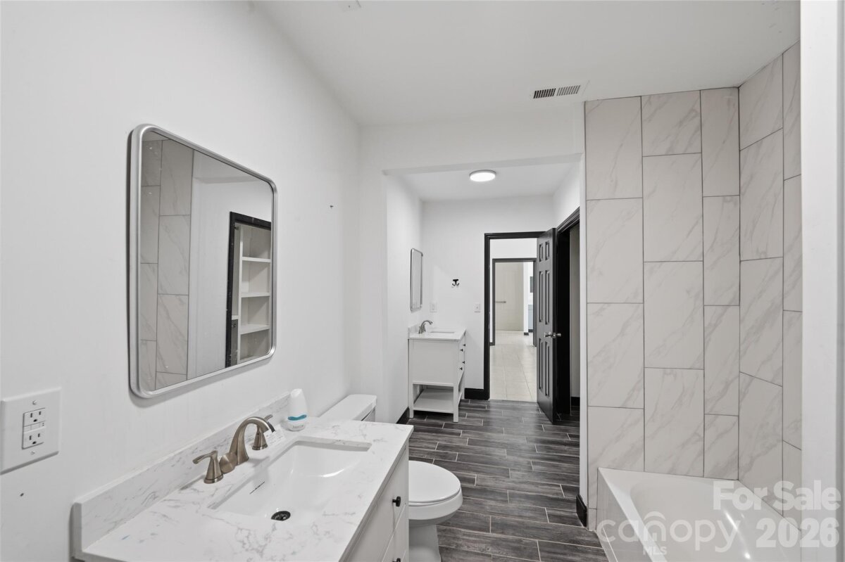 Spacious split-level brick home ideally situated just minutes from Uptown Charlotte! This beautifully updated property features gleaming hardwood floors, sleek quartz countertops, and modern stainless steel appliances. A rare find, the home includes two full kitchens, offering incredible flexibility for extended living and entertaining. Enjoy unparalleled convenience with quick access to Charlotte’s best amenities—breweries, top-rated restaurants, South End, the Panthers’ stadium, and all the must-visit hotspots near Center City. Perfect for anyone seeking comfort, space, and an unbeatable location.