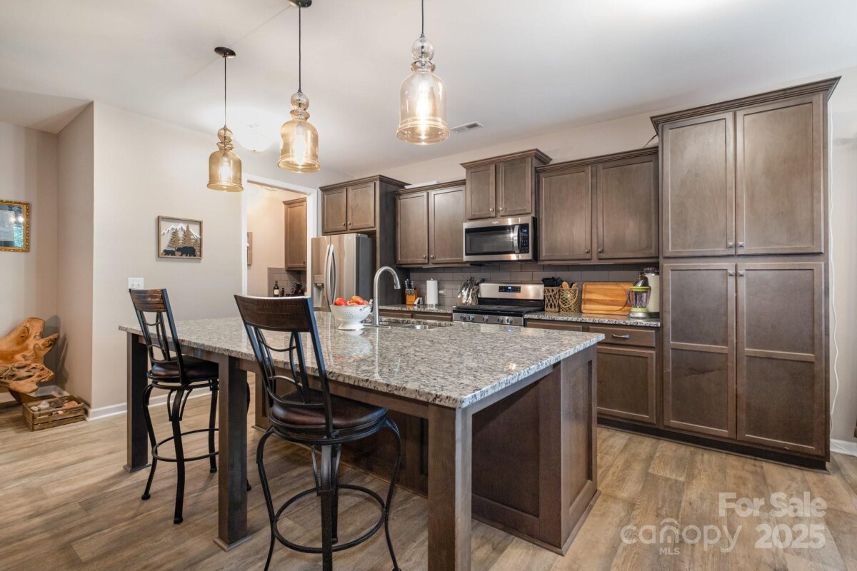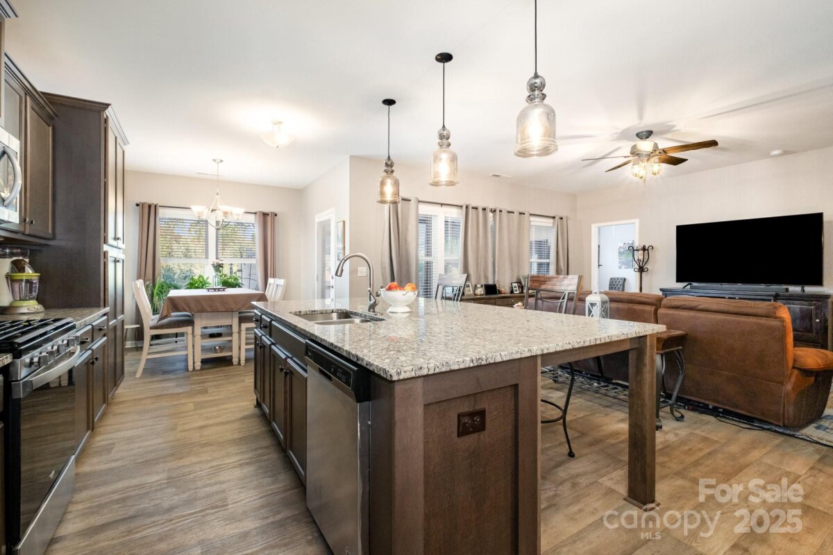 This gorgeous 3-bedroom, 2-bath home is nestled in the desirable Larkin subdivision, perfectly situated on the 11th hole of the prestigious 500 Golf Club in Statesville, NC. Boasting a beautiful open layout, this home features spacious rooms filled with natural light, creating a warm and inviting atmosphere. The primary bathroom has been recently upgraded with $20,000 worth of luxurious enhancements, offering a spa-like retreat. The insulated garage provides comfort and efficiency year-round, while the meticulously maintained landscaping adds to the home’s exceptional curb appeal. Out back, a large concrete patio with a retractable awning offers the perfect space for outdoor entertaining or relaxing while taking in the serene golf course views. This home combines elegance, comfort, and functionality in an ideal location. This is a must see to be appreciated.