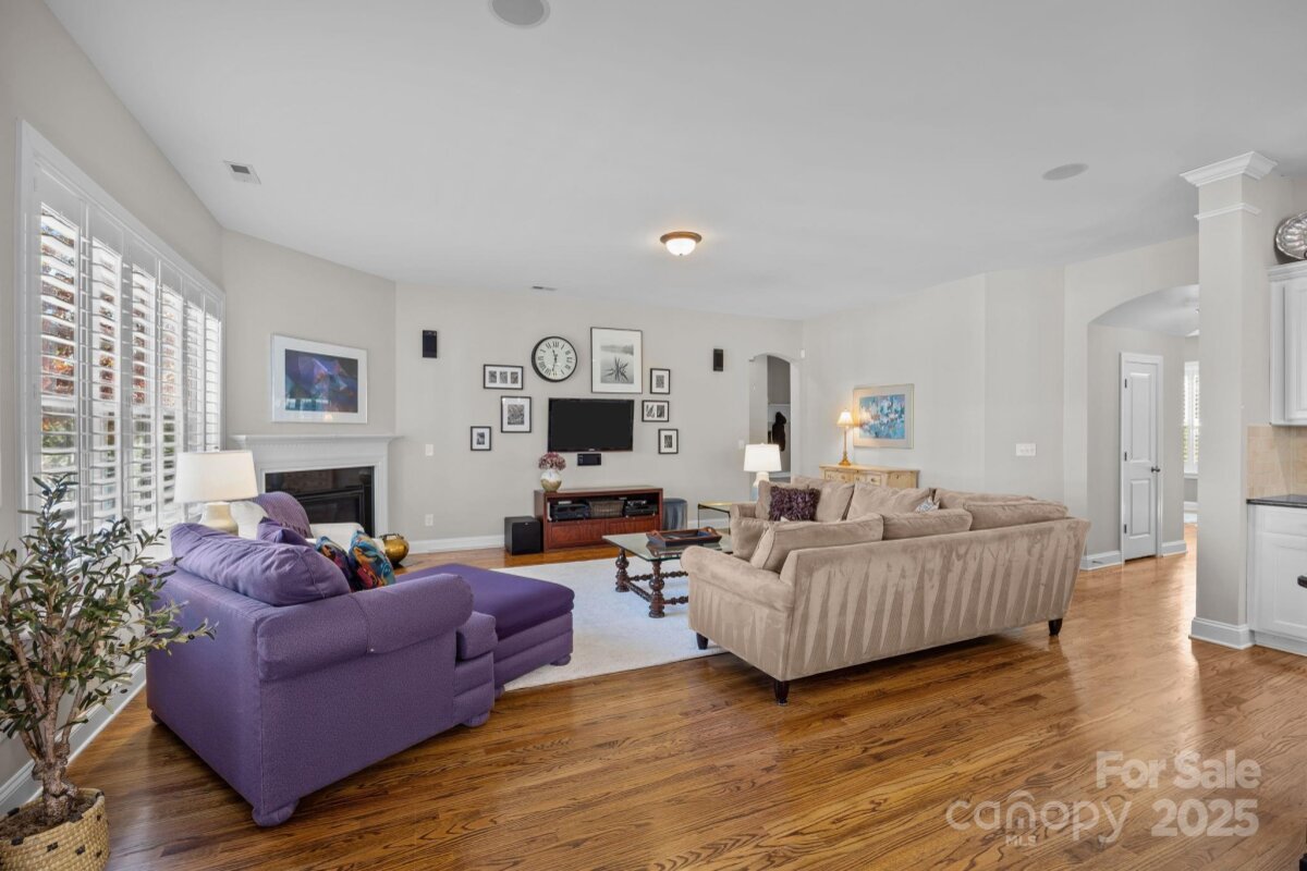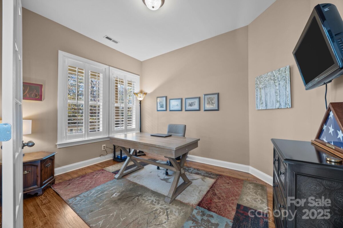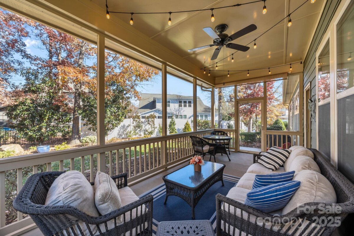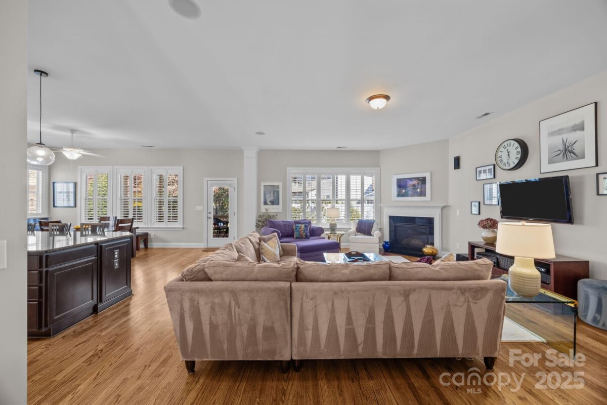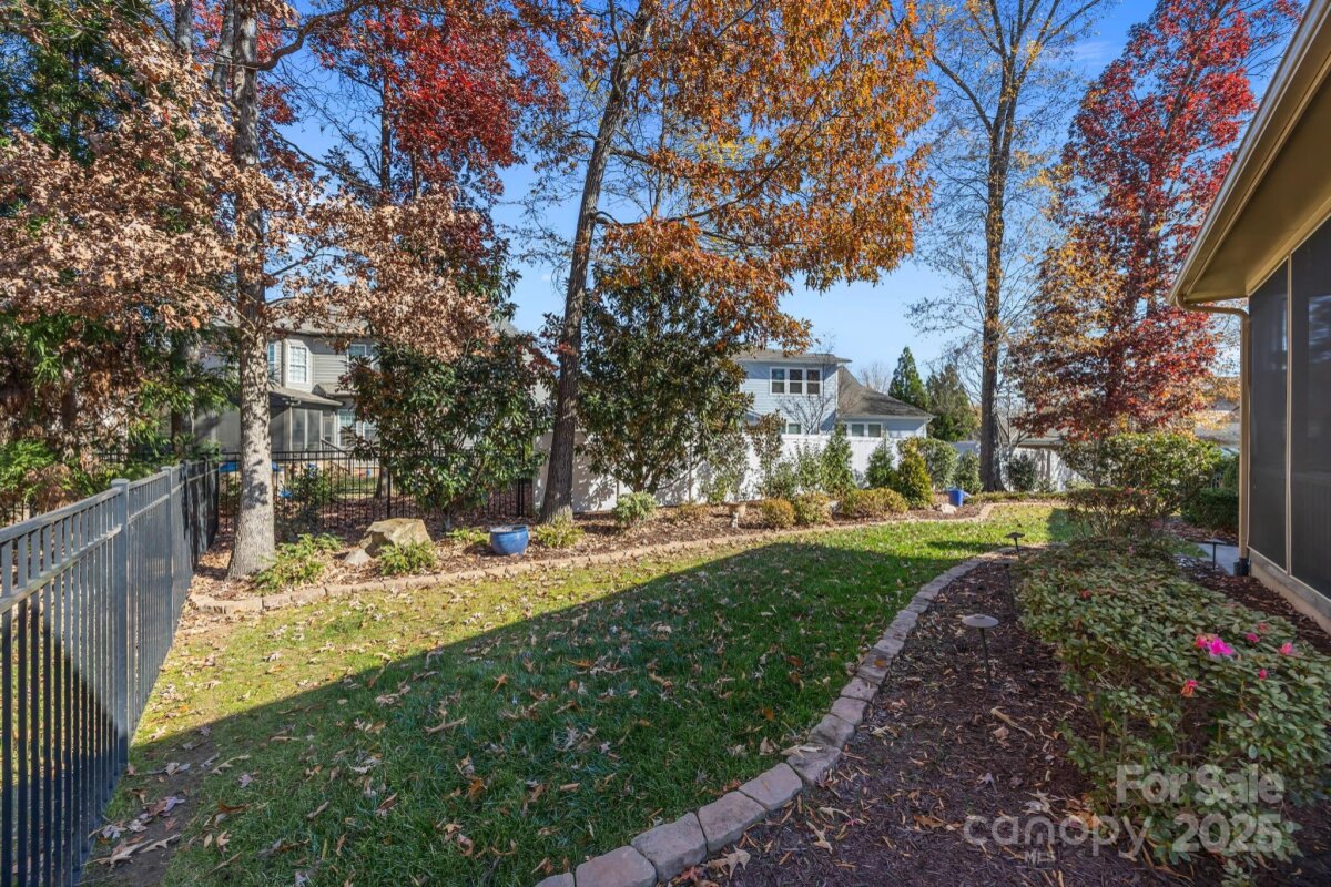 Welcome to this beautifully appointed ranch home featuring an open floor plan with a spacious great room and gourmet kitchen boasting a large island, white cabinets, granite countertops, and a gas stove. Hardwood floors and plantation shutters add timeless charm throughout. The primary suite offers an oversized tiled walk-in shower, granite countertops, and a large walk-in closet. Two additional bedrooms share a stylish bathroom with quartz countertops. Enjoy a dedicated office with French doors, a spacious dining room, a large walk-in laundry room with cabinets and counter space, drop zone area, a patio perfect for grilling and gas log fireplace. Relax on the screened porch overlooking the private fenced backyard with beautiful landscaping. Covered front porch faces a peaceful wooded area for added privacy. This home as been exceptionally well-maintained and cared for with no detail overlooked! Located in Vermilliion with fantastic amenities including 2 pools, playground, sidewalks, tree-lined streets, and Harvey's - the neighborhood restaurant! All walking distance to charming Downtown Huntersville. Easy access to i-77 approximately 25 minutes to Uptown Charlotte!