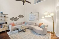 WELCOME TO HARBOR CLUB! Experience this lakeside community with a neighborhood dock and playground. This beautiful home is perfect for entertaining and everyday living. The main level boasts a kitchen with breakfast area, family room with high ceilings, living room, dining room, and half bath. Main level opens up to the fenced backyard. Attached two car garage on main level. Upper level features three bedrooms, two full baths, and spacious laundry room. Primary bedroom has en-suite bathroom and walk-in closet. Home is situated on a cul-de-sac. Harbor Club is adjacent to McDowell Nature Preserve which offers public access to trails, boating, and fishing.