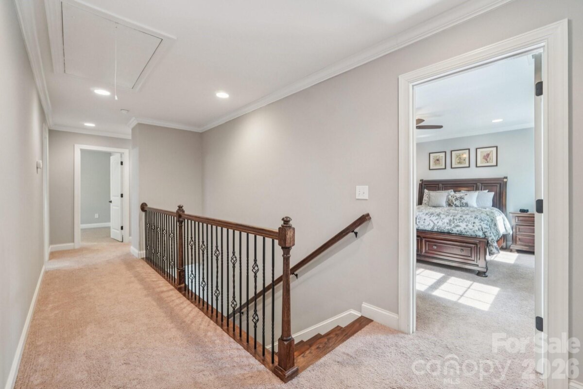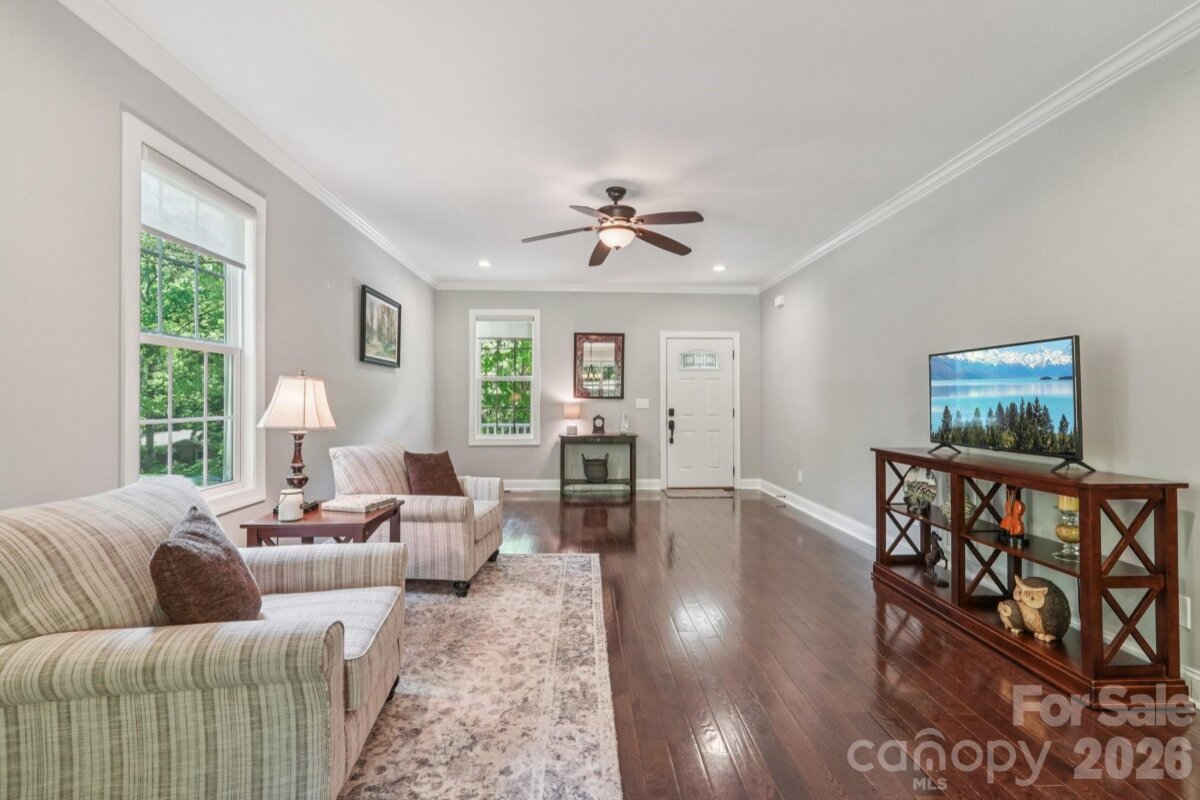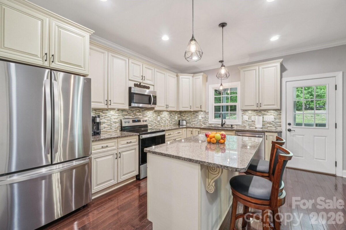 Welcome to this beautifully maintained, move-in ready home offering the freedom of NO HOA and NO city taxes! From the moment you arrive, you’ll be impressed by the meticulously landscaped yard and the peaceful, tree-lined setting that provides both privacy and charm. Step inside to discover fresh neutral paint and gleaming hardwood floors that flow throughout the main level. The open-concept living and dining areas create an inviting space for everyday living and entertaining, seamlessly connecting to the well-appointed kitchen. Here, you’ll find cream, soft-close cabinetry, granite countertops, a stylish tile backsplash, a center island with bar seating, a pantry, and stainless steel appliances. Upstairs, the spacious primary suite offers a relaxing retreat with a large walk-in closet and an ensuite bath featuring dual vanities, tile floor, and a tub/shower combination. Additional bedrooms are thoughtfully positioned, with one offering flexibility as a bonus room or home office. A full bath and a convenient laundry room complete the upper level. This home has been lovingly cared for, with thoughtful updates that provide peace of mind, including a well-maintained crawl space with insulated pipes, regularly serviced HVAC, and a new garage door and opener (2025). The tall garage also features generous overhead storage—perfect for seasonal items and outdoor gear. Situated on a private and peaceful 0.64-acre lot, this home offers the best of both worlds: a quiet retreat that’s still conveniently located near I-77, Lake Norman, shopping, dining, Lowe’s Corporate Headquarters, and Duke Health Lake Norman. Homes in this desirable community rarely become available—don’t miss your opportunity to make it yours!