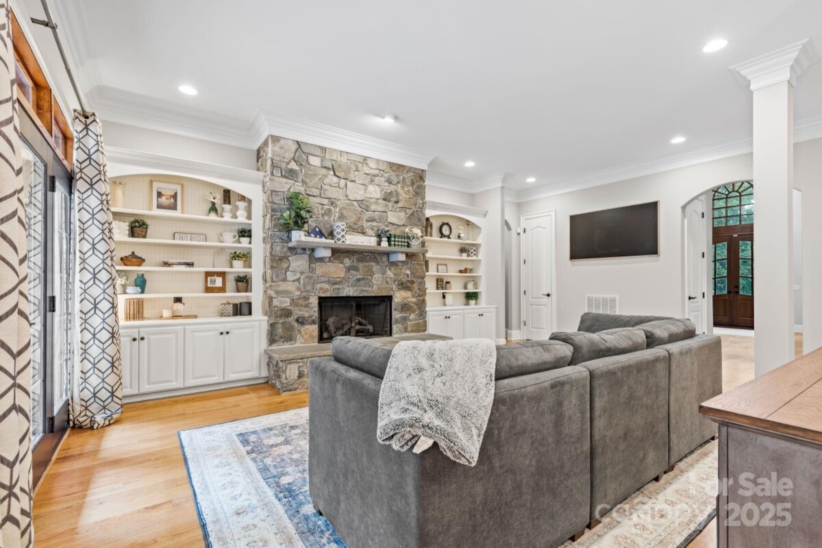Gorgeous full brick custom luxury home with seasonal views of Lake Norman! Perfectly situated on nearly 2 acres directly across from the lake, this property combines elegance, privacy, and resort-style living. An impressive driveway leads you to the home’s 3-car garage with epoxy floors and workspace, setting the tone for the craftsmanship and care found throughout. The home is surrounded by mature trees and professional landscaping with lighting and irrigation, creating a serene and picturesque setting. Inside, refined architectural details include 3-piece crown molding, 12†baseboards, 5†plank wood floors, built-ins, plantation shutters, and a vaulted wood ceiling in the study. The main-level primary suite features a tray ceiling and spa-like retreat. The chef’s kitchen overlooks the great room with a cozy gas fireplace and boasts classic cherry wood cabinets refinished in crisp white for a perfect blend of elegance, strength, and contemporary style, granite counters, a stone backsplash, stainless steel appliances, easy-close drawers, and a Thermador 5-burner gas cooktop. Upstairs offers three spacious bedrooms, a large bonus room with wet bar, and a fully equipped theater room designed for movie nights and game-day gatherings. Outdoor living is just as impressive, featuring a sparkling saltwater in-ground pool, expansive patios, and plenty of room for entertaining. Two walk-in storage areas provide incredible convenience, while the property’s unique location bordering 28 acres of greenway adds privacy and exclusivity. All this while being just minutes from schools, shopping, dining, lake access, Lake Effects Boat Club, and commuter routes including I-77 and Hwy 16 for easy access to Charlotte and the airport. A rare opportunity to own a beautiful luxury home with acreage, seasonal Lake Norman views, and resort-style amenities.