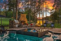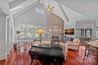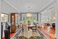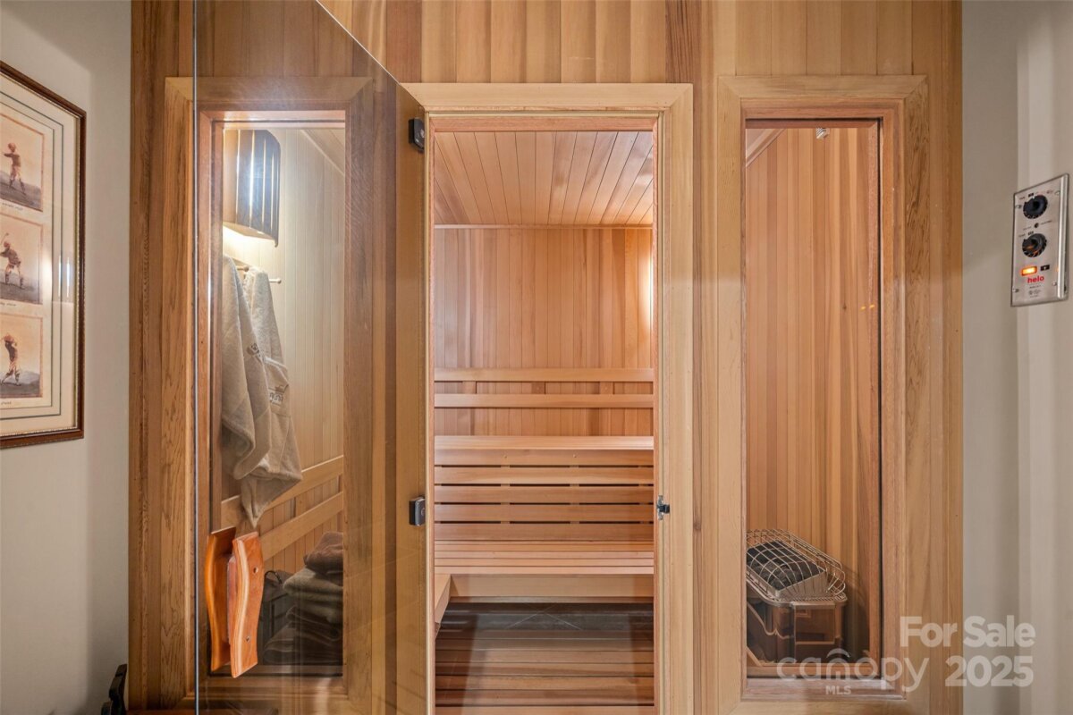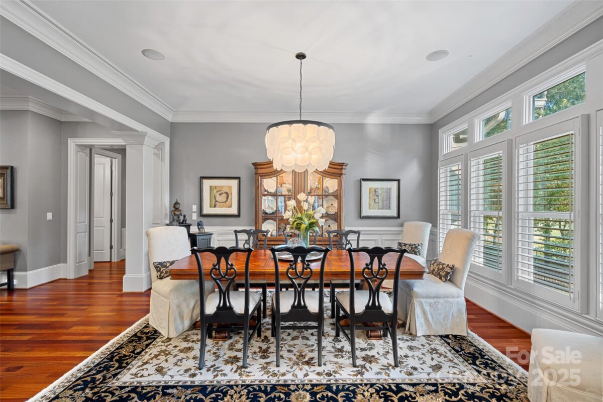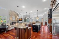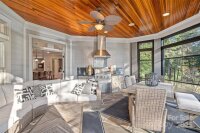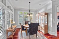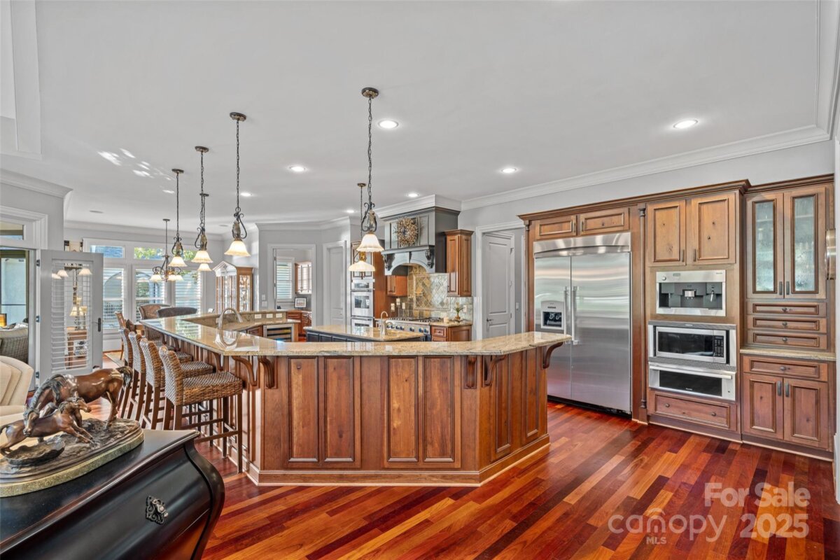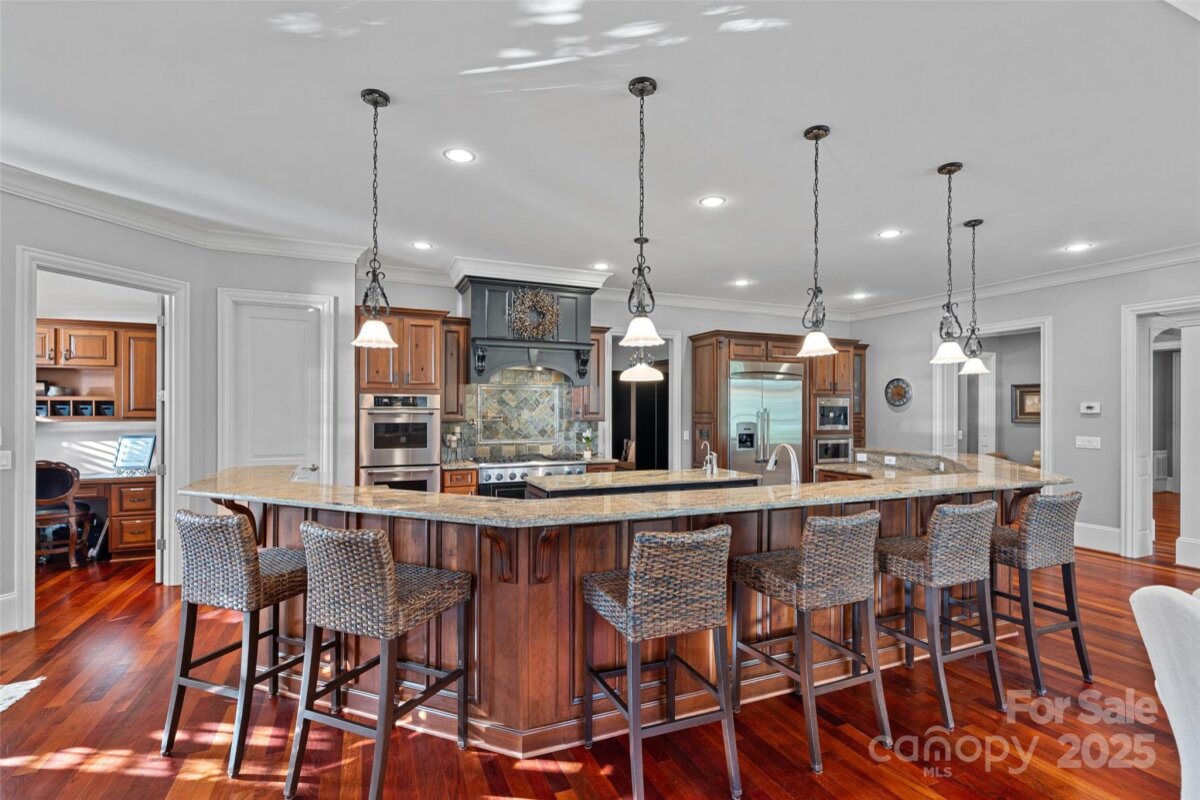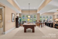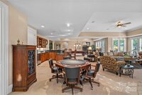 Nestled within The Point on Lake Norman, this custom-built luxury estate is a masterpiece of design, offering an unparalleled lifestyle where lakefront tranquility meets championship golf. Situated on approximately 1.5 private, park-like acres in a quiet cul-de-sac, the residence captures spectacular, simultaneous sunset views of Lake Norman and vistas across the 10th fairway of Trump National Golf Club Charlotte. Exquisite craftsmanship defines the interiors, which showcase intricate detailed molding and an open-concept layout designed for both grand entertaining and sophisticated lake living, featuring five en suite bedrooms and a powder room. The main level specifically features a private office with Custom Paneled Wood Wainscot Molding and a coffered ceiling, a second office for two with lake views, and an expansive dining room with a modern chandelier. The gourmet kitchen is a chef's dream, appointed with an abundance of walnut cabinetry, professional Thermador appliances, a Miele coffee maker, and an oversized island with seating for 12, seamlessly flowing into a vaulted great room with a stone fireplace and a uniquely versatile solarium that offers year-round enjoyment with its retractable glass and screen system. The luxurious main-level primary suite boasts beautiful views, dual closets, and a spa-like bath, while the upper level thoughtfully provides three additional en suite bedrooms, a cozy loft with built-in bookshelves and a two-person desk area, with a large walk-in attic for storage. The finished lower level provides the ultimate retreat, complete with a guest suite, full bar, a dedicated billiards area, a warm family room with a stone fireplace, a yoga/flex room, a commercial-grade gym, and a large sauna. Outside, the resort-style amenities continue with a heated saltwater pool and spa, an outdoor stone fireplace, and a built-in grill, all overlooking the dual water and golf course scenery, with direct backyard access to the lake for paddle boarding, complemented by a four-car garage plus a whole-home generator. Trump National Golf Club Charlotte includes golf, pickle ball courts, tennis courts, a fitness center, restaurants and tons of social events.