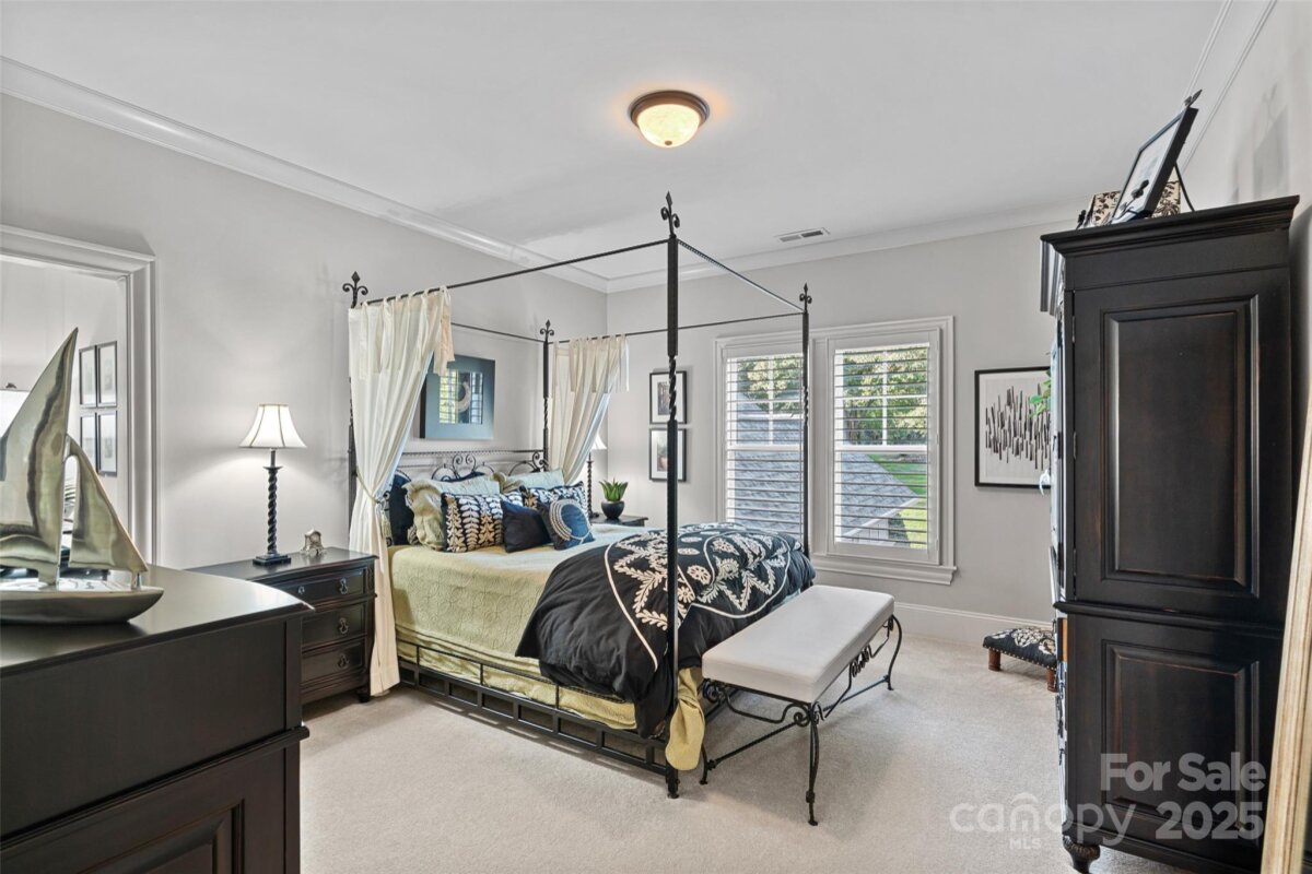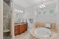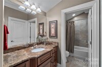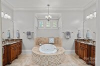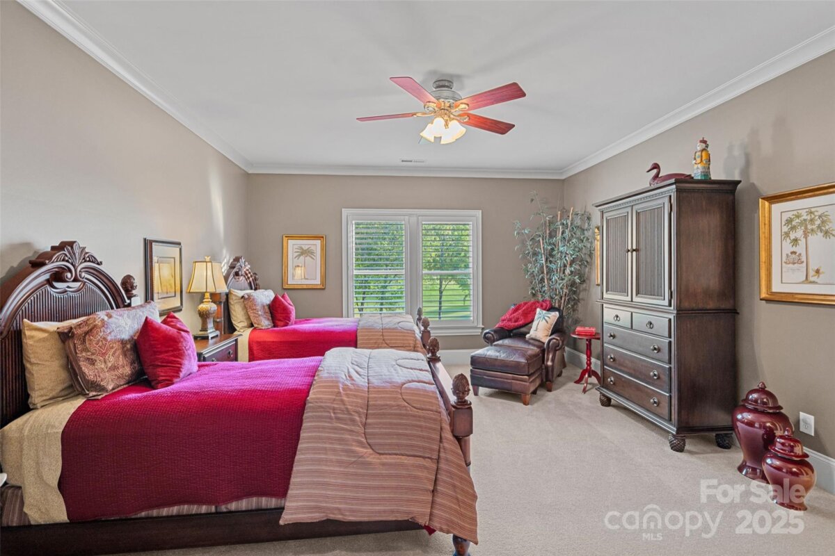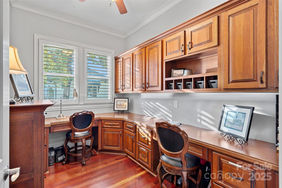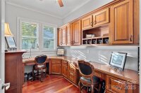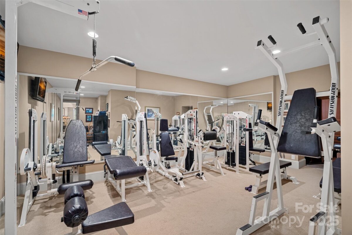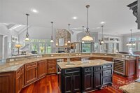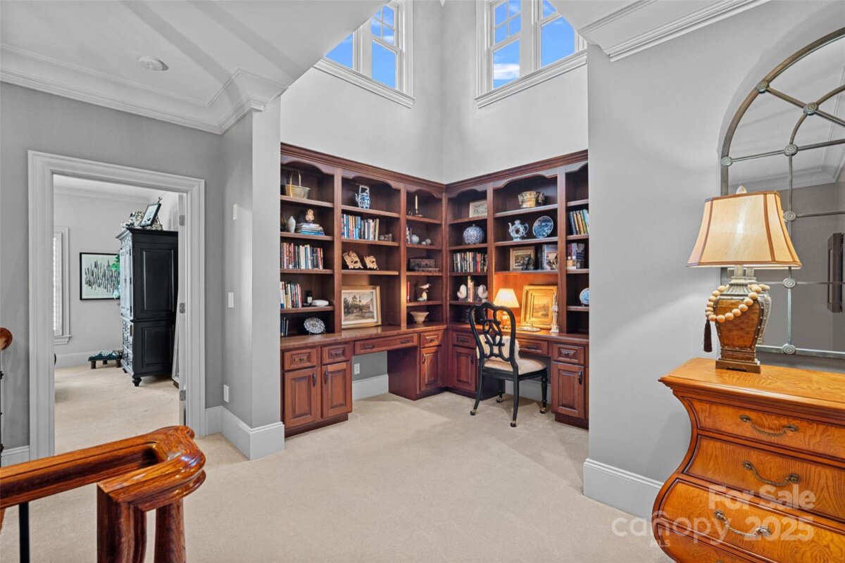 Nestled within The Point on Lake Norman, this custom-built luxury estate is a masterpiece of design, offering an unparalleled lifestyle where lakefront tranquility meets championship golf. Situated on approximately 1.5 private, park-like acres in a quiet cul-de-sac, the residence captures spectacular, simultaneous sunset views of Lake Norman and vistas across the 10th fairway of Trump National Golf Club Charlotte. Exquisite craftsmanship defines the interiors, which showcase intricate detailed molding and an open-concept layout designed for both grand entertaining and sophisticated lake living, featuring five en suite bedrooms and a powder room. The main level specifically features a private office with Custom Paneled Wood Wainscot Molding and a coffered ceiling, a second office for two with lake views, and an expansive dining room with a modern chandelier. The gourmet kitchen is a chef's dream, appointed with an abundance of walnut cabinetry, professional Thermador appliances, a Miele coffee maker, and an oversized island with seating for 12, seamlessly flowing into a vaulted great room with a stone fireplace and a uniquely versatile solarium that offers year-round enjoyment with its retractable glass and screen system. The luxurious main-level primary suite boasts beautiful views, dual closets, and a spa-like bath, while the upper level thoughtfully provides three additional en suite bedrooms, a cozy loft with built-in bookshelves and a two-person desk area, with a large walk-in attic for storage. The finished lower level provides the ultimate retreat, complete with a guest suite, full bar, a dedicated billiards area, a warm family room with a stone fireplace, a yoga/flex room, a commercial-grade gym, and a large sauna. Outside, the resort-style amenities continue with a heated saltwater pool and spa, an outdoor stone fireplace, and a built-in grill, all overlooking the dual water and golf course scenery, with direct backyard access to the lake for paddle boarding, complemented by a four-car garage plus a whole-home generator. Trump National Golf Club Charlotte includes golf, pickle ball courts, tennis courts, a fitness center, restaurants and tons of social events.