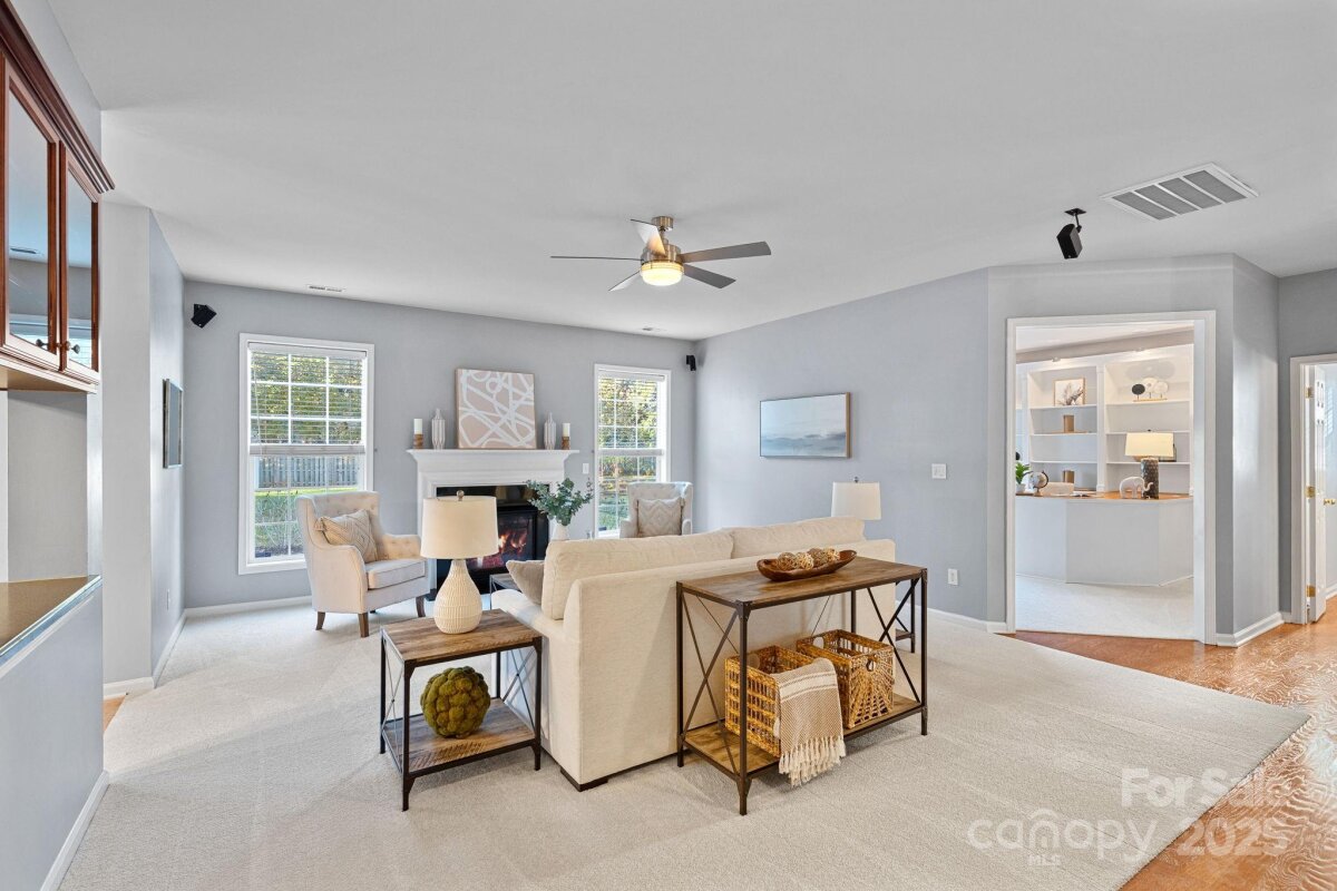 PRICE IMPROVEMENT - Must see this immaculate move-in ready home featuring 5-bedrooms and offering space, style, and comfort. Freshly painted with new carpet throughout, this residence features a bright, open layout designed for modern living. The main level includes a private office with custom built-ins, a spacious family room, formal living and dining rooms, and an inviting kitchen with Corian countertops, ideal for entertaining. Upstairs, five well-appointed bedrooms include a generous primary suite with sitting area, large walk-in closet, and private bath. Enjoy outdoor living in the large, flat, fenced yard with irrigation system, paver patio, and gazebo. Additional highlights include a Ring security system, surround sound, and appliances that can convey with an acceptable offer. Ideally located near the local rec center, shopping, dining and more. Fabulous community amenities! Stylish, spacious, and truly move-in ready—this home is a must-see!
