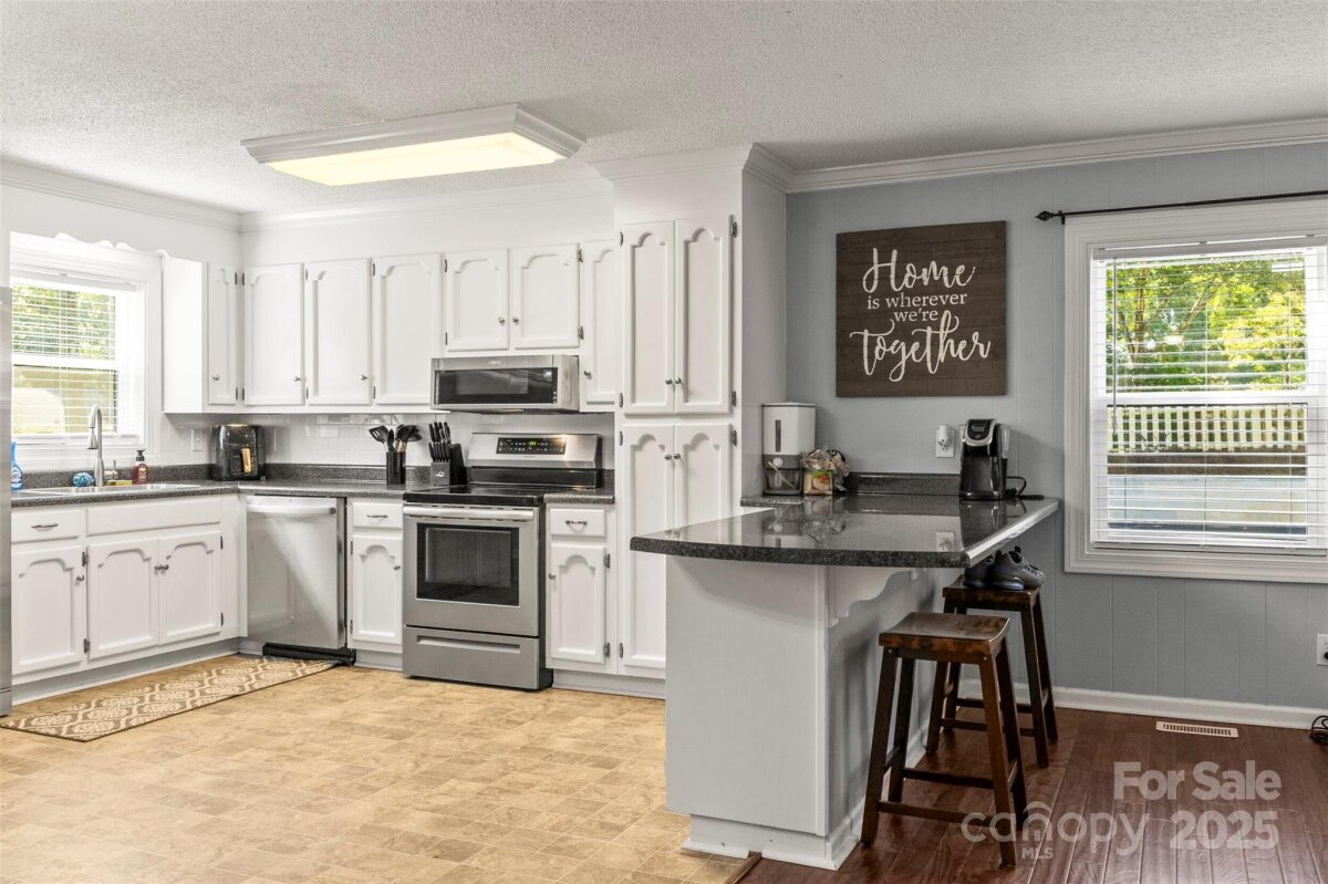 Location Location! This neighborhood is a very desirable hidden Gem with NO HOA! Just minutes to Denver and only 12 minutes to Charlotte Douglas Airport. 2 Primary suites, 3-bedroom home with private office that is currently being used as a 4th bedroom. New windows August 2025, New HVAC 2023, New gutters on home and building 2024, Large fenced back yard and a 5-year-old 30x50x11 Metal building with an 8 x 9 door and a 10 x 12 door, 3 windows and 2 skylights. Also a covered walkway from the attached garage. New retaining wall and new paved driveway September 2025. 3 full bathrooms that have all been updated. Large Open living and kitchen area with massive refrigerator/freezer, solid wood cabinets were painted 9-19-2025, and wood burning fireplace in the living room. Attached Garage could easily be turned into additional living space. Seller is in the process of moving out. Please disregard paint colors, All bedrooms were painted and popcorn scraped on 9-23-25 Seller will scrape remaining popcorn ceilings as soon as he is completely moved out. Agent is related to seller