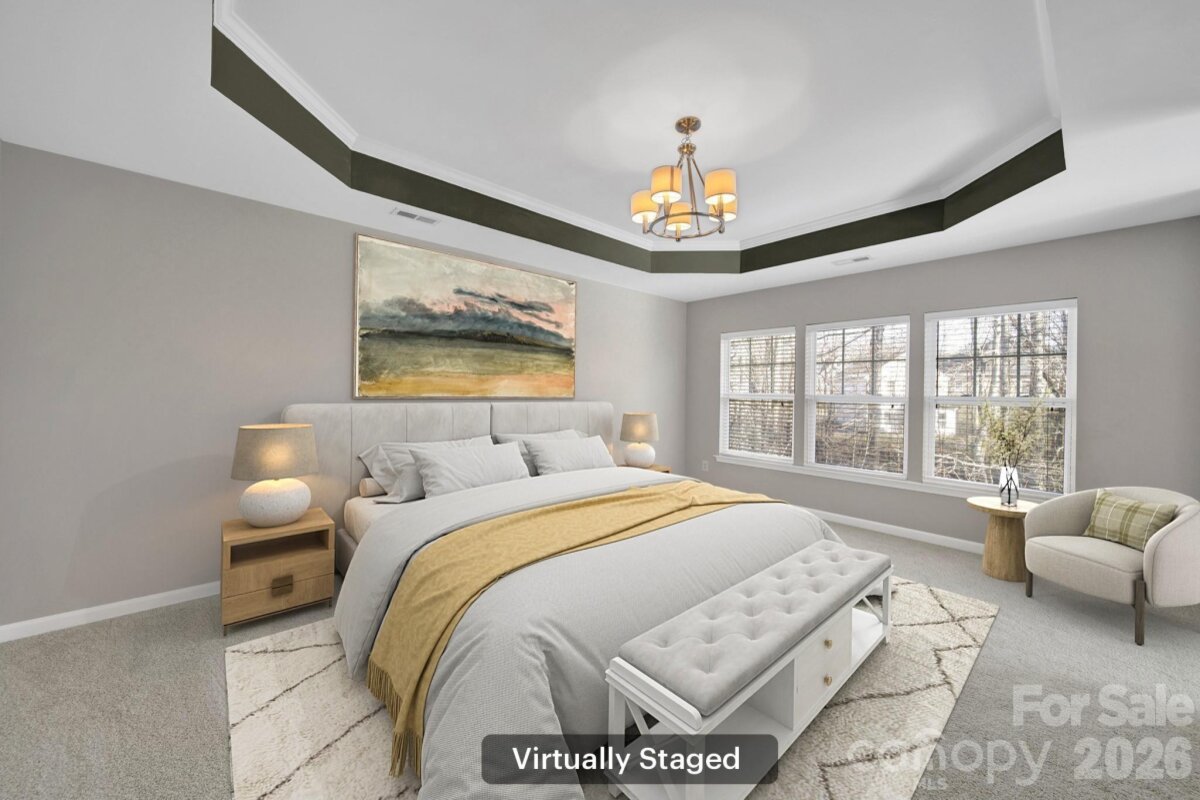 Located in the highly desirable Callonwood community, this home offers an exceptional blend of space, flexibility, and location. With over 2,000 square feet and four finished bedrooms, the layout is functional and easy to live in, with abundant windows that bring in beautiful natural light throughout. The home has been recently refreshed with fresh paint throughout the entire living space, new LVP flooring on the main level, and brand new carpet upstairs. You will also appreciate the updated bathroom vanity and mirrors, adding a clean, modern touch. Out back, the fenced backyard backs to a wooded common area, creating a peaceful setting and added privacy during much of the year. The kitchen features white cabinetry and granite countertops for a bright, timeless look. Major systems have already been taken care of too, with a brand new A/C and furnace installed in September. Callonwood is loved for its sidewalks, community pool, playground, and welcoming neighborhood atmosphere. Enjoy close proximity to Francis Beatty Park with walking trails, sports fields, and green space, plus easy access to I-485 for quick trips to shopping, dining, and everyday conveniences. A great opportunity to own in a well-established, sought-after neighborhood.