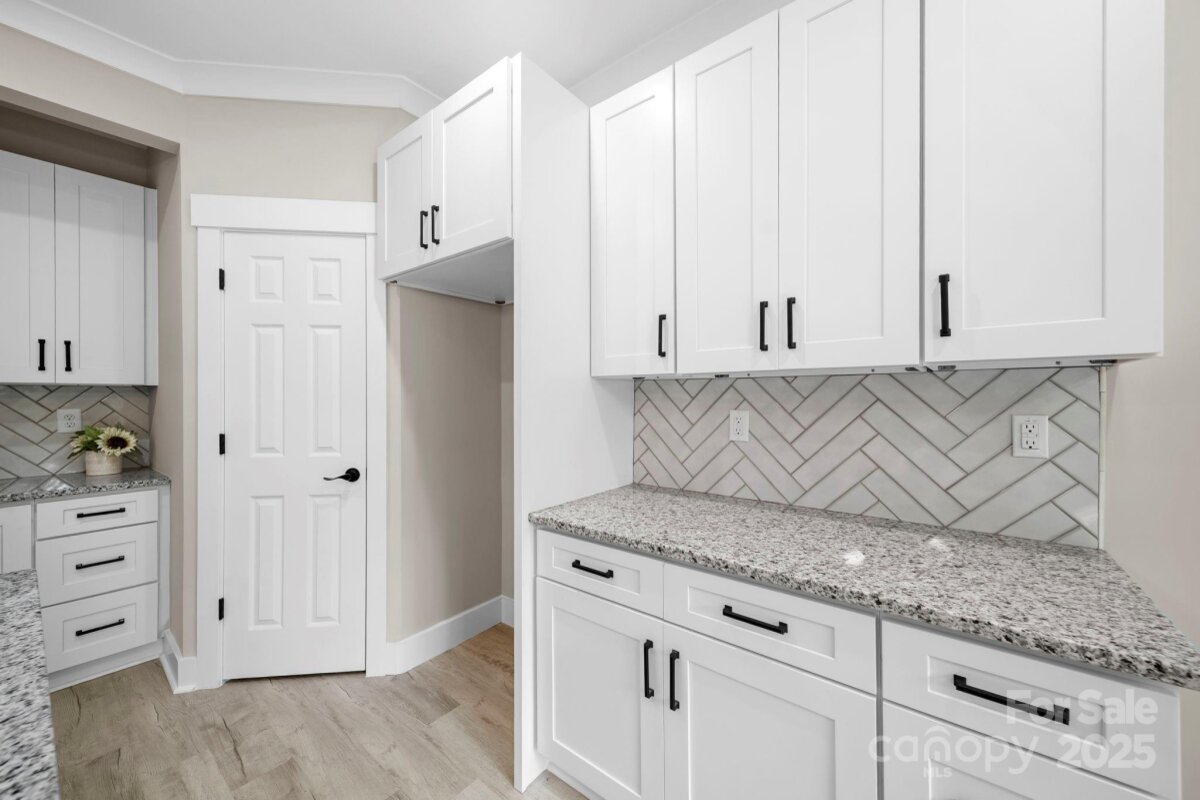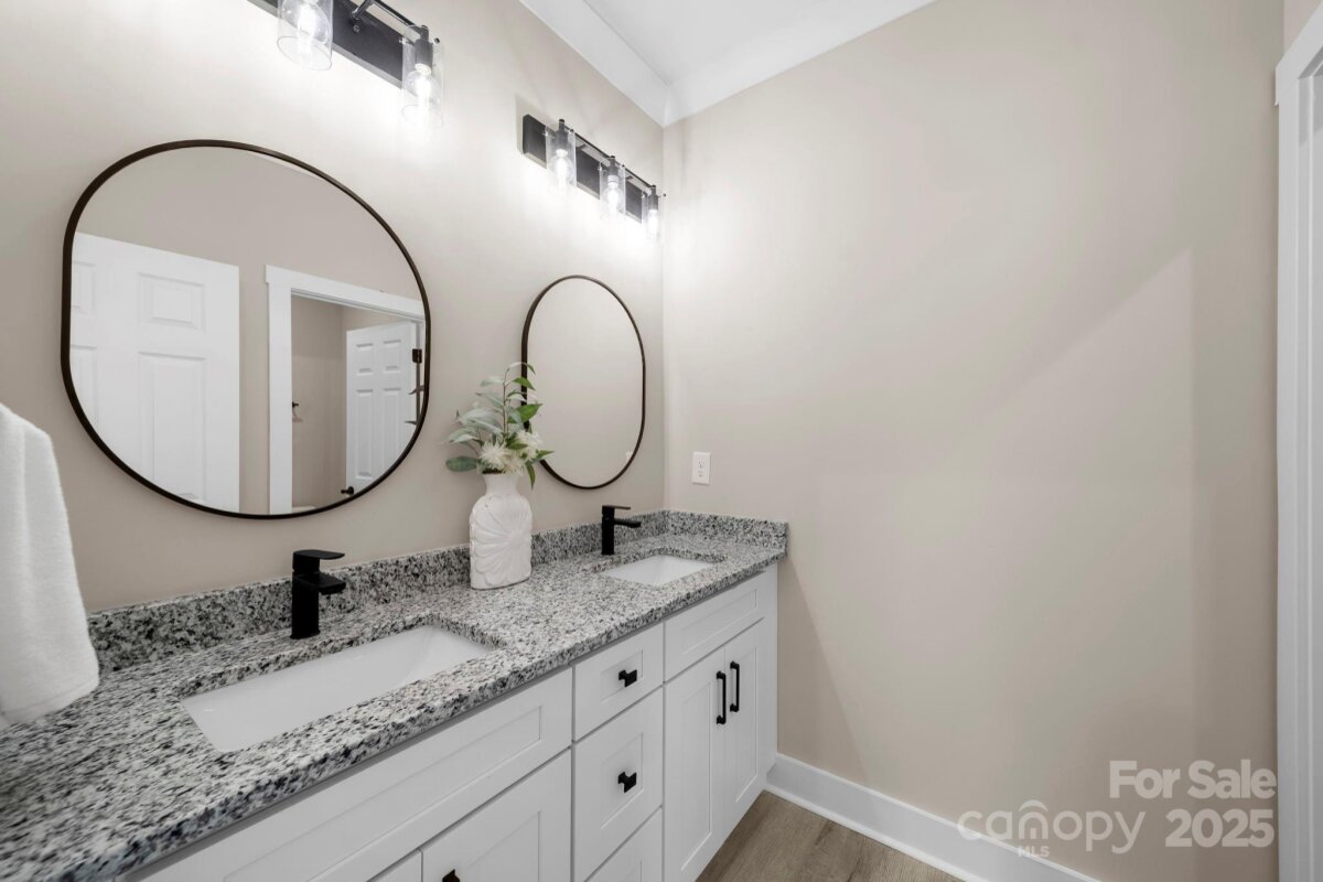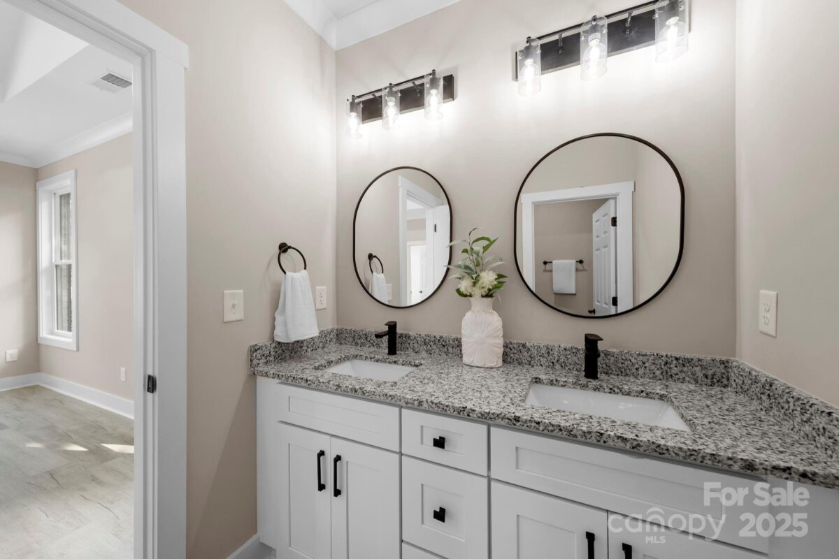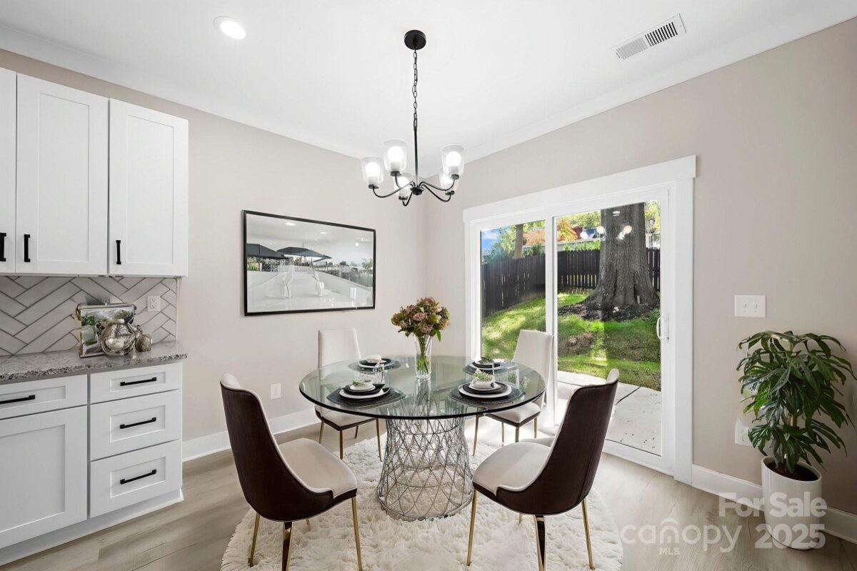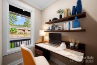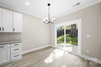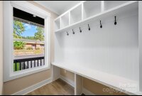 This stunning two-story home features 3 bedrooms and 2.5 bathrooms, beautifully blending modern elegance with timeless charm. The exterior showcases a clean brick facade with black accents on the garage door and side gate, nestled among mature trees that provide privacy and natural beauty. Inside, the inviting living room boasts exquisite coffered ceilings and a built-in entertainment center with a sleek linear fireplace—creating a cozy focal point for gatherings. Large windows flood the space with natural light, highlighting the bright and airy atmosphere. The open floor plan flows seamlessly into spacious living and dining areas, perfect for entertaining or everyday comfort. Neutral tones, crisp white built-ins, and light wood-look flooring add a contemporary and welcoming touch. Upstairs, the primary suite offers a luxurious retreat complete with an ensuite bathroom and a custom walk-in closet, complemented by two additional bedrooms and a guest bathroom. Enjoy convenient access to nearby amenities, including Stanly Community College, Pfeiffer University, lakes, parks, and the vibrant Albemarle community. This home perfectly combines comfort, style, and location—schedule your tour today and make it yours!
