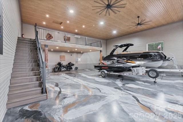 The Garages at LKN — Mooresville’s premier luxury garage and flex space destination. This newly completed 55' x 45' (2,475 sq ft) unit offers an additional fully built-out 364 sq. ft mezzanine ideal for executive office space, a private lounge, or creative studio, with expansive climate-controlled space below designed for vehicle storage, specialty collections, equipment, or boutique business operations. Upgraded lighting, elevated finishes, and a custom staircase lead to a warm, modern upper level featuring wood accents, sleek architectural railings, and premium flooring. Every detail has been thoughtfully curated to blend function with sophistication. An optional epoxy floor finish transforms the space into a true automotive showroom. Owners enjoy exclusive access to a private clubhouse complete with conference room, lounge areas, and snack bar — a rare amenity. Turnkey, versatile, and intentionally designed — this is a standout opportunity in one of Lake Norman’s fastest-growing corridors.