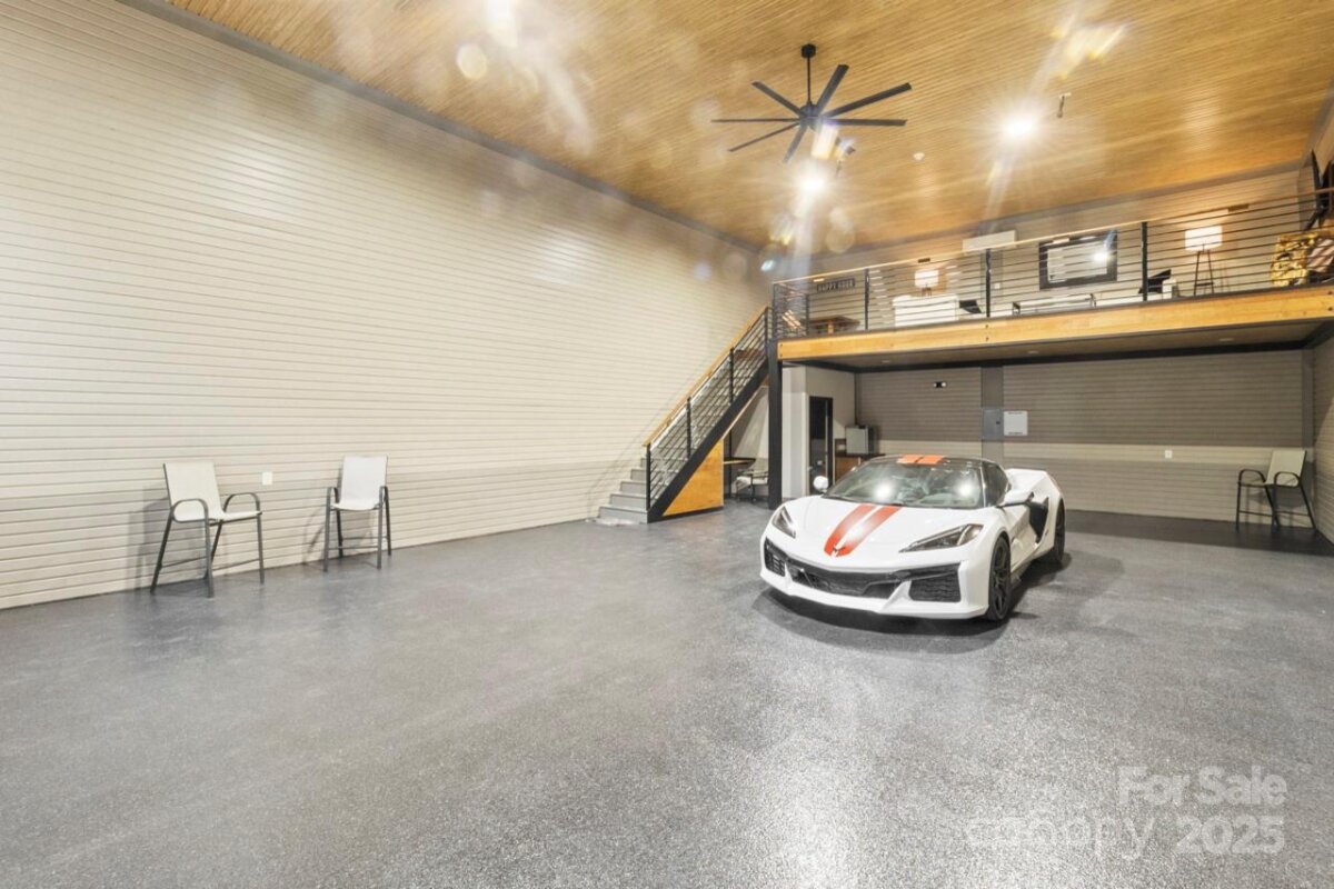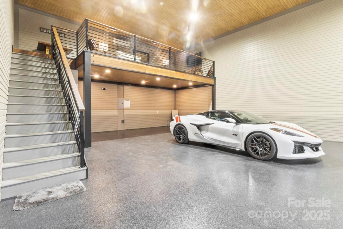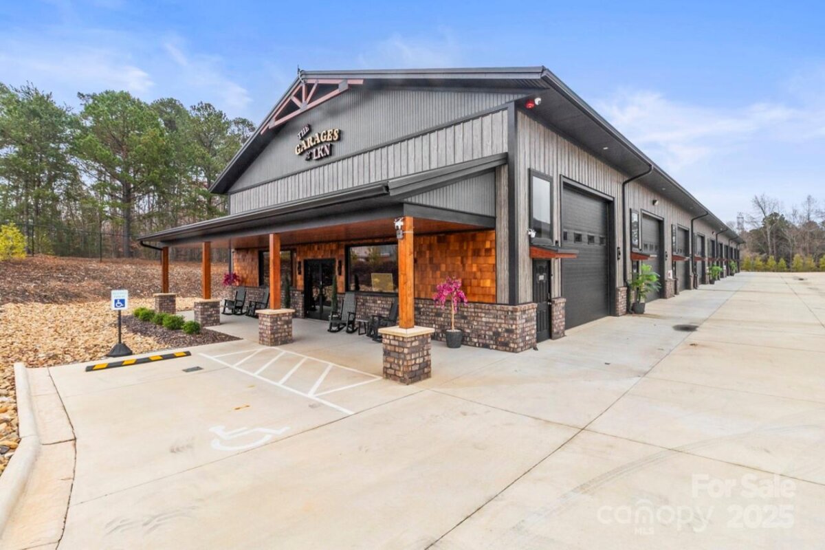 Discover an exceptional opportunity at The Garages at LKN—Mooresville’s premier destination for luxury storage, small business operations, passion projects, and personal retreat spaces. This newly finished 1,500 sq ft unit offers an upgraded, turnkey environment featuring a fully finished mezzanine ideal for a lounge, office, creative studio, or client meeting area. The main level provides expansive, climate-controlled space perfect for storing high-end vehicles, recreational equipment, or operating a boutique business. Quality finishes, upgraded lighting, and a beautifully crafted staircase lead to the upper mezzanine, where warm wood accents, modern railings, premium flooring, and ample seating areas create an inviting second-story hangout or workspace. One standout feature of The Garages at LKN is the exclusive community clubhouse, available only to owners within the complex. This amenity includes a conference room, lounge spaces, and a snack bar, offering an elevated experience rarely seen in commercial storage or flex-use developments. Whether used for car collection, personal storage, entertainment, or a small business needing a polished and private setting, this unit delivers unparalleled versatility with style. The owner’s thoughtful upfit ensures the space is move-in ready and designed for both functionality and enjoyment. A rare chance to own a highly desirable, amenity-rich commercial unit in one of Lake Norman’s most dynamic and fast-growing areas.