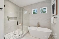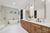 Unmatched luxury, comfort and style! Built by prestigious Rivus Construction, this home sits at the end of a quiet cul-de-sac offering elegance, and cutting-edge design. Soaring cathedral ceilings and expansive windows flood the open-concept layout with natural light, creating an inviting and airy ambiance. The gourmet kitchen is a showstopper with high-end finishes, site-finished hardwoods, designer lighting, and tile selections. The spacious living and dining areas flow seamlessly to the covered back deck backyard. The main-level primary suite is a serene retreat featuring a spa-like bath with exquisite finishes. Upstairs, a large en-suite bedroom (or rec room) connects to a flex room, alongside two additional bedrooms with a Jack & Jill bath. Located minutes from Uptown, SouthPark, and top-rated schools, this is more than a home—it's a lifestyle you won’t want to leave!