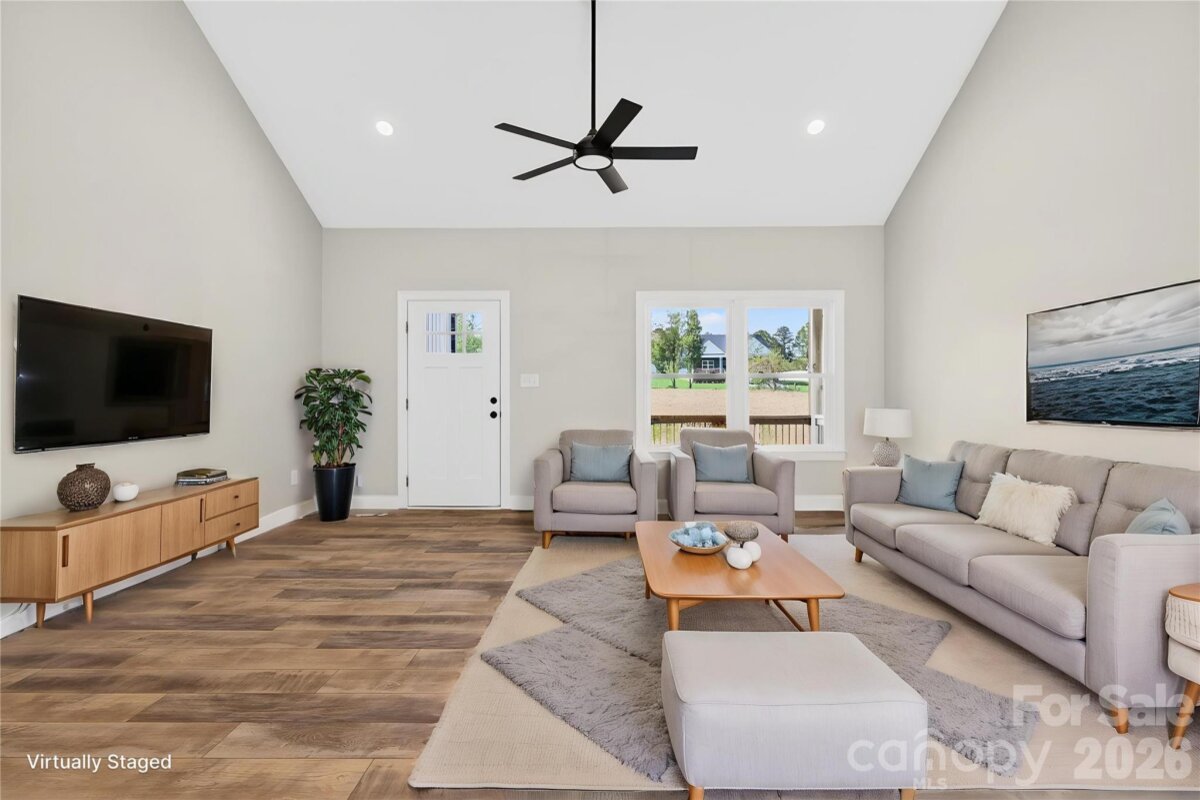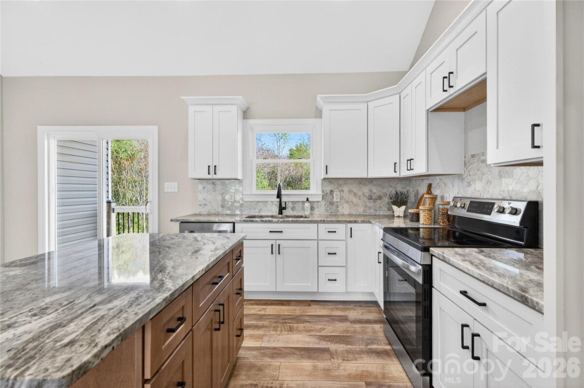 New Construction on Over an Acre in Harmony! Welcome to this beautifully crafted new construction home nestled on a spacious 1.119-acre lot in Harmony. This thoughtfully designed 3-bedroom, 2-bath home features an open floorplan perfect for modern living and entertaining. Step inside to a stunning cathedral ceiling in the main living area, creating a bright and airy atmosphere. The home is enhanced with custom upgrades throughout, including luxury vinyl plank (LVP) flooring for durability and style. The kitchen is a true centerpiece, featuring granite countertops, a marble backsplash, and ample space for cooking and gathering. The primary suite offers a private retreat with an ensuite bath, while the additional bedrooms are generously sized with 9-foot ceilings. Enjoy the convenience of a large 2-car garage and the serenity of the expansive lot, complete with a wooded view and a peaceful stream at the very back—perfect for creating your own outdoor oasis. Don’t miss this opportunity to own a brand-new home with privacy, space, and modern finishes in a beautiful setting! Close to Statesville, Winston-Salem, Wilkesboro and more. NOTE: some pictures are virtually staged and refrigerator is NOT in the home Details on home: 20ft cathedral in living area, kitchen, dining room; 9ft ceilings throughout home; Solid block foundation with solid block piers; Full solid brick along front and garage as well as block and brick stairs; Solid wood cabinets, all with soft close hinge; Premium granite countertops throughout kitchen and bathrooms; Marble backsplash; LVP Flooring throughout; Night light fixtures; Spacious laundry room with cabinetry and hanging rod; Solid wood shelving in pantry and closet systems; Large spacious two car garage with room for storage or a work area; Covered front porch with poured concrete; Covered rear deck with dry storage underneath; 1.12 acre lot with stream behind home; Spacious crawl space and access door to allow for under home storage; Pella window and door package; 6†black commercial guttering; Range and Dishwasher