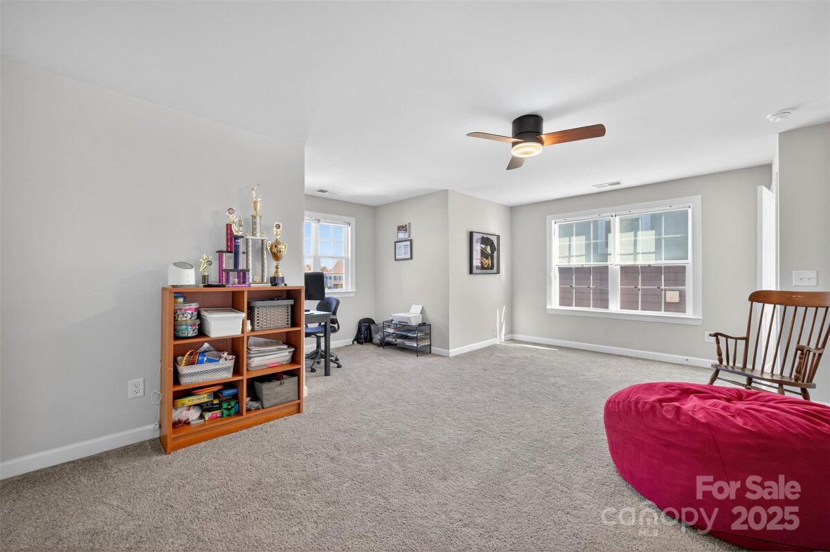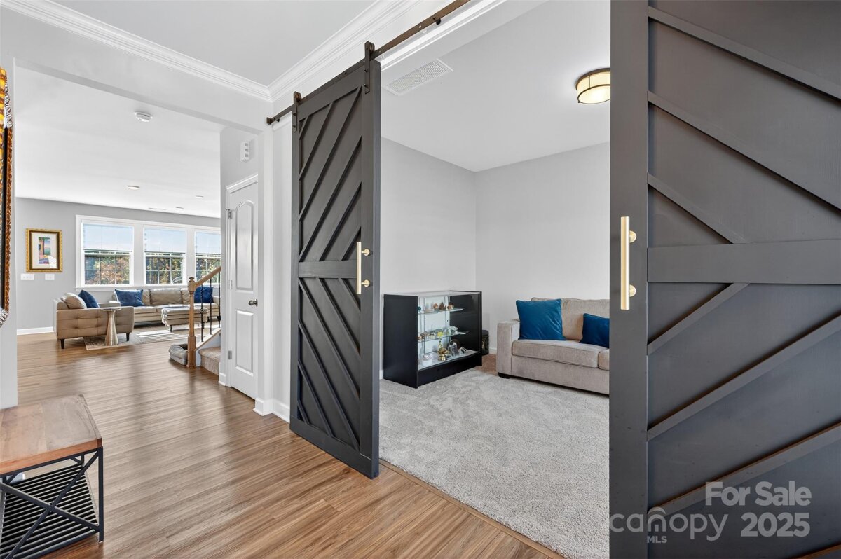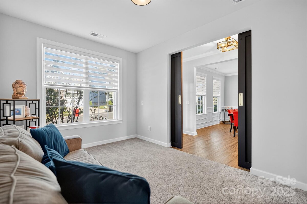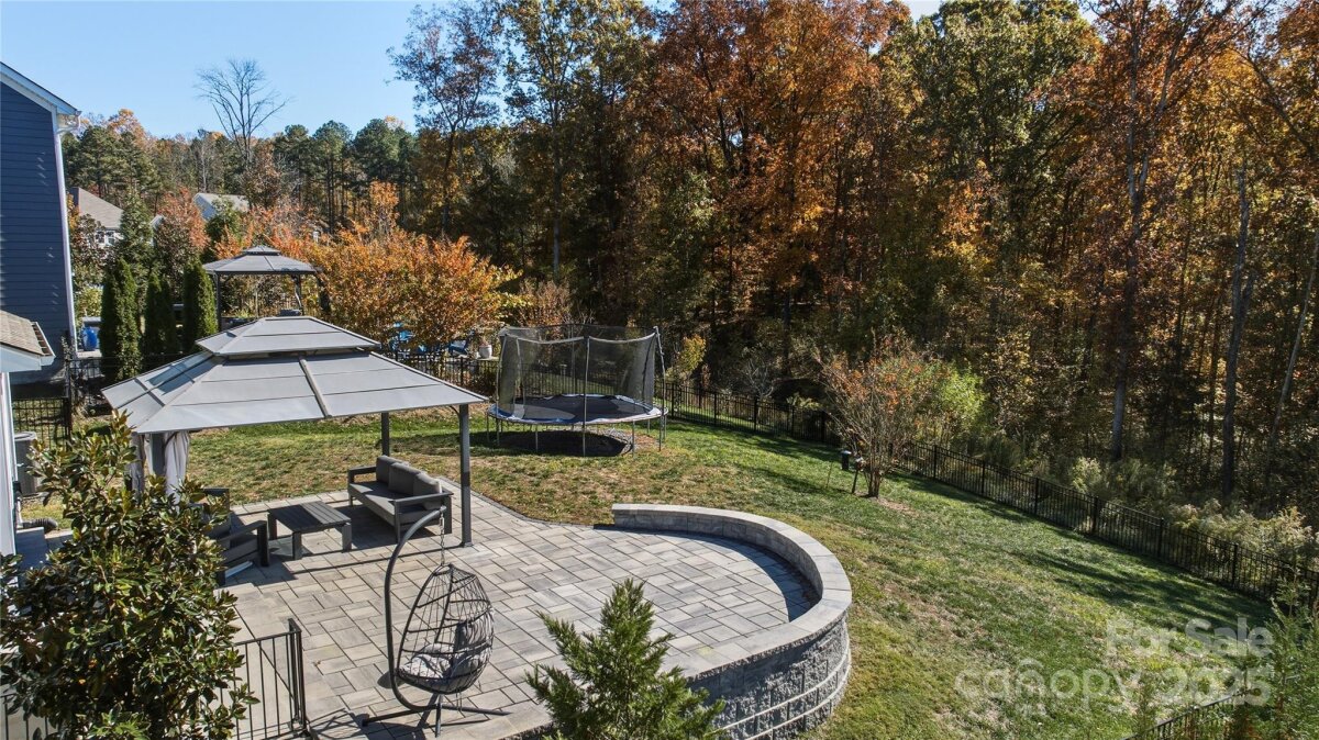 Welcome to Davidson East! This stunning home sits on a premium serene wooded lot and features a beautifully designed, lighted paver patio with a cabana - perfect for entertaining. Right near the greenway trail and located in a top-rated school district, this home offers the ideal blend of comfort, convenience, and community. The inviting covered front porch ushers you inside where you'll find luxury vinyl plank flooring throughout the main level, a cozy gas fireplace, and an open-concept kitchen equipped with a gas stove, quartz countertops, large island, and under-cabinet lighting. Formal dining area flows through your butler's pantry into the open kitchen. This open floor plan offers excellent flow, modern finishes, plenty of space for entertaining and exudes natural light. Up the first staircase, there are four spacious bedrooms, including your primary suite with a wooded view, along with an additional hall bath. The 2nd staircase leads to a large bonus room - Versatile space that could be used as an optional 5th bedroom or office, complete with a large closet. Additionally, plumbing is available and could easily turn this space into a 2nd living area. Back on the main level, you will also find a stylish office with designer barn-style doors and a convenient half bath providing additional flexibility for work or guests. Additional features include a tankless water heater. Yard has been recently aerated & seeded and ready for spring growth. Davidson East is conveniently located along Hwy 73 with easy access to 77 & 85, along with close proximity to area parks, shopping & dining. Currently zoned for Davidson Elementary, Bailey Middle, and Hough High School.