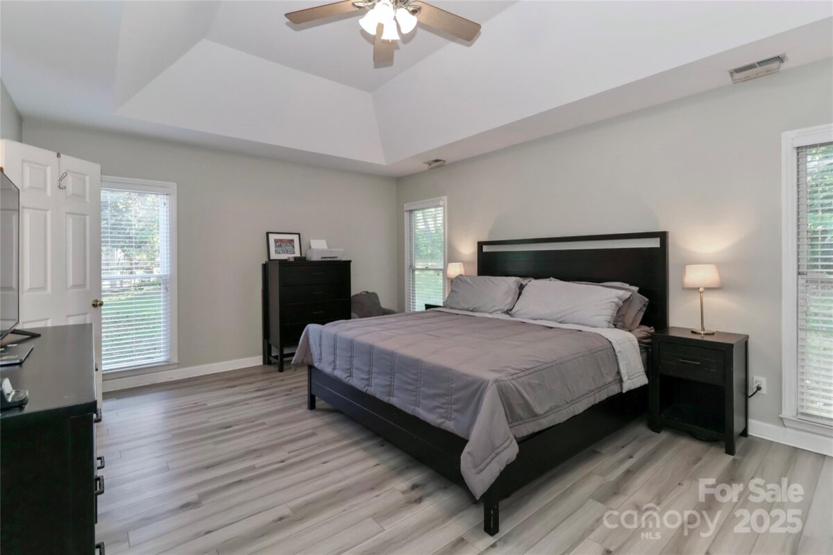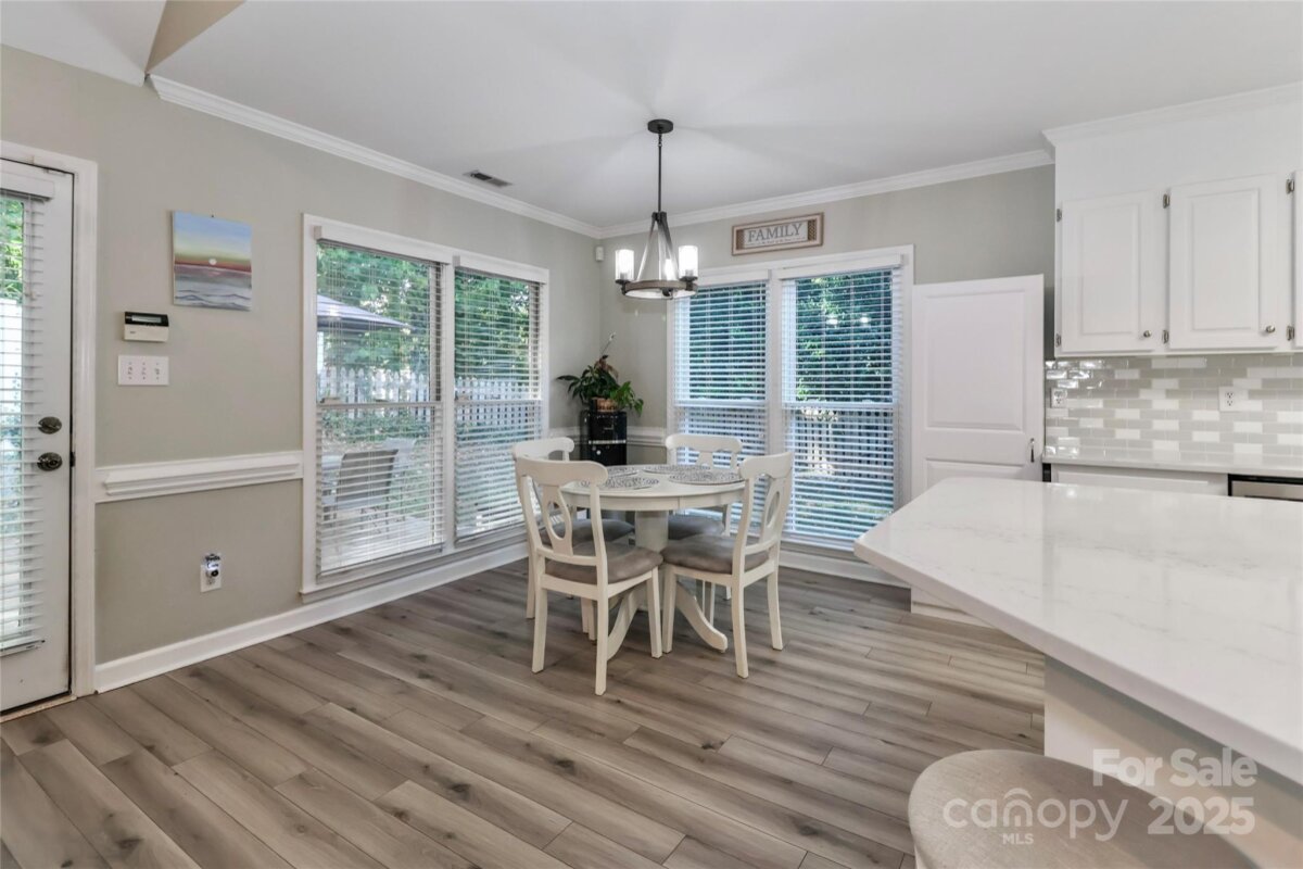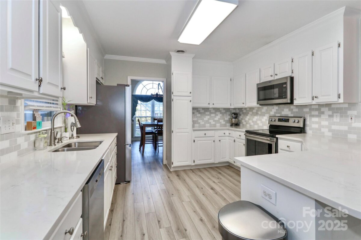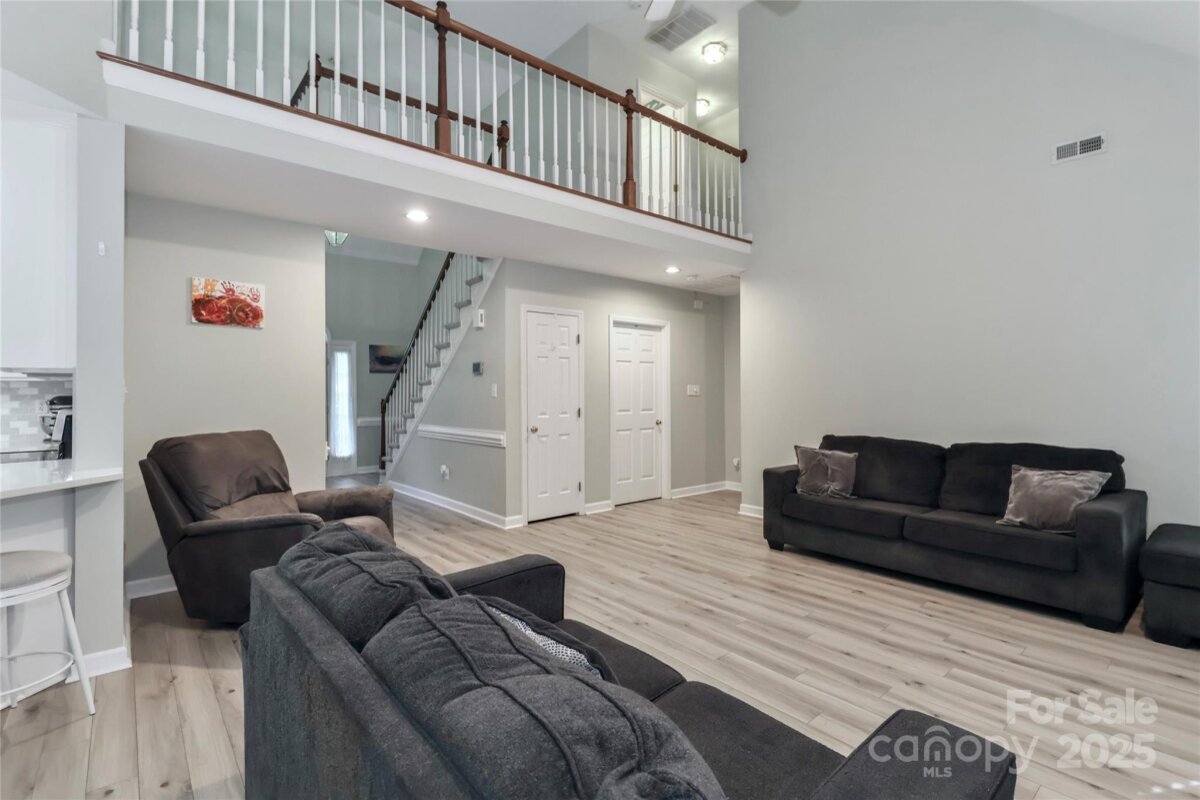 Highly sought-after Franklin Grove home featuring four bedrooms with the primary suite on the main level! The second-story balcony overlooks a spacious great room with a beautiful fireplace. The kitchen was fully remodeled in 2021 with gleaming quartz countertops, subway tile backsplash, and fresh paint. Enjoy newer LVP flooring throughout the first floor, new carpet upstairs, plus major updates including a new roof and HVAC (2020) and a new hot water heater (2022). Just steps away from Bellingham Park, offering walking and bike trails, sports fields, playgrounds, and covered bocce ball courts. The Franklin Grove community also features a stocked pond for fishing, perfect for a relaxing afternoon close to home. Side-entry garage and Mooresville Graded Schools make this one a must-see!