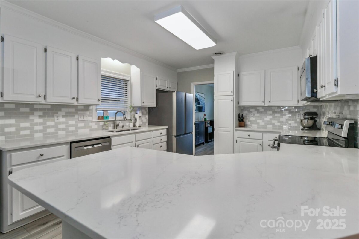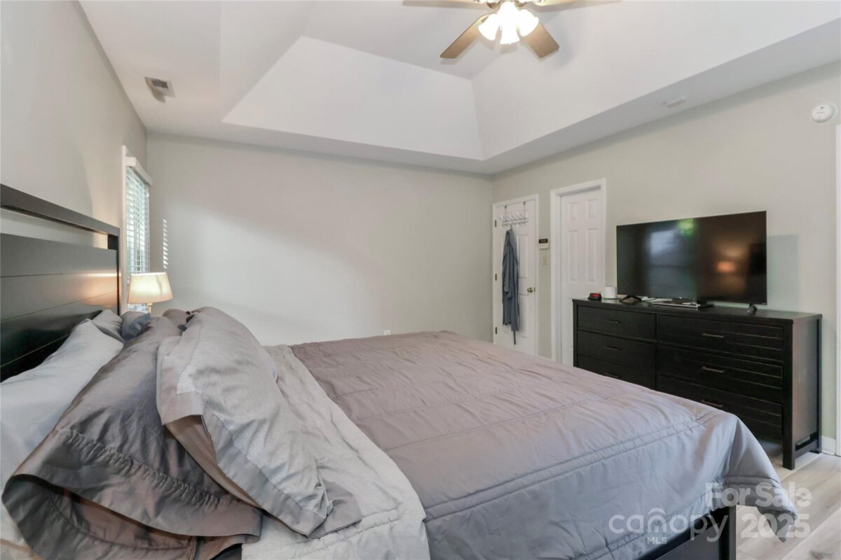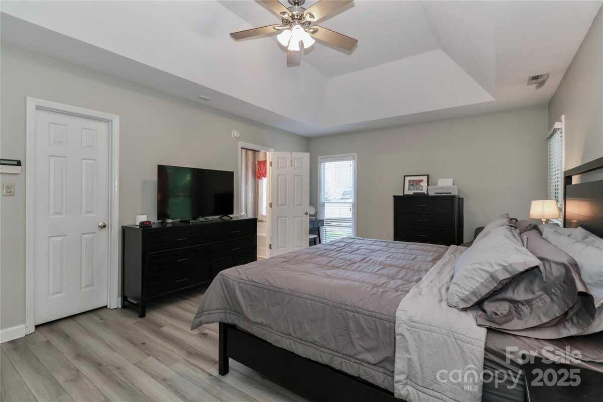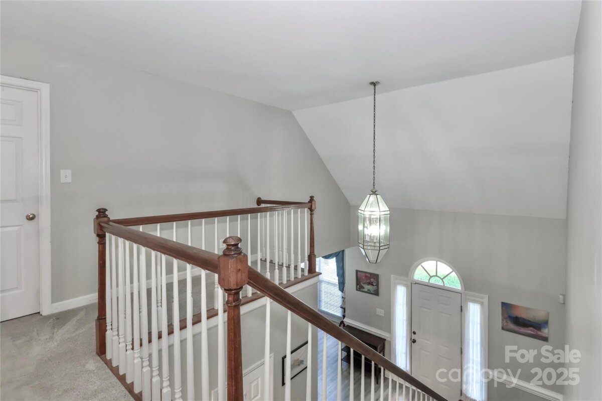 Highly sought-after Franklin Grove home featuring four bedrooms with the primary suite on the main level! The second-story balcony overlooks a spacious great room with a beautiful fireplace. The kitchen was fully remodeled in 2021 with gleaming quartz countertops, subway tile backsplash, and fresh paint. Enjoy newer LVP flooring throughout the first floor, new carpet upstairs, plus major updates including a new roof and HVAC (2020) and a new hot water heater (2022). Just steps away from Bellingham Park, offering walking and bike trails, sports fields, playgrounds, and covered bocce ball courts. The Franklin Grove community also features a stocked pond for fishing, perfect for a relaxing afternoon close to home. Side-entry garage and Mooresville Graded Schools make this one a must-see!