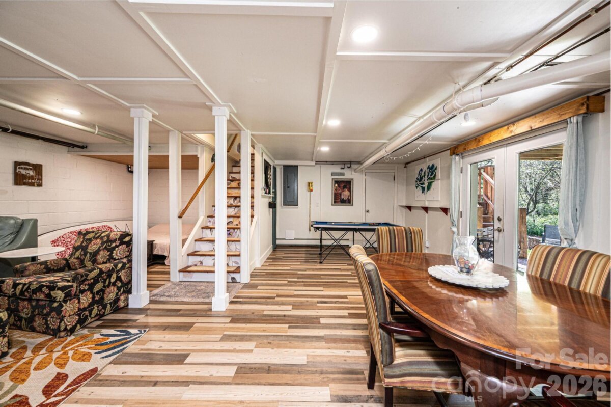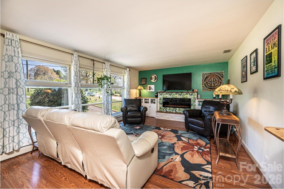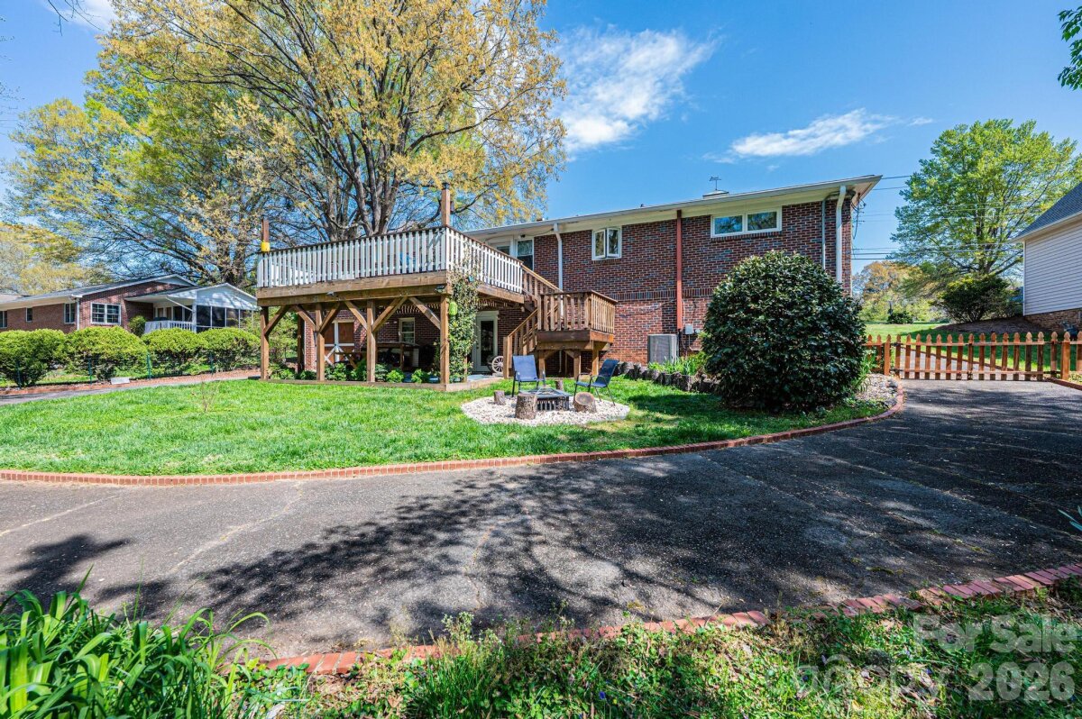 Adorable 3BR/2BA brick ranch w/ basement in highly desirable NW Hickory location! Many recent updates have enhanced the timeless charm of this lovely home, while the versatile floor plan offers many possibilities. (e.g., combine largest BR w/ adjacent bath for a huge Primary Suite) The roomy Den features shiny, original hardwoods, built-ins & fireplace/mantel with classic dentil molding & tile surround. From here, access the large (6' x 27') covered front porch. Oversized windows in Living Room invite abundant natural light, while the recently added electric fireplace delivers calm ambience, as well as efficient supplemental heat. Basement is newly renovated w/ electric fireplace, wet bar w/ mini-fridge and french doors for access to the shaded 15' x 25' patio. Many options exist for this space, such as rec room, craft area, home office, etc. The unfinished portion also provides ample storage, a workshop area, and double barn doors for the lawnmower. Enjoy the flowering landscape, deep backyard, and wildlife from the 16' x 20' deck. Paved parking in rear including a turnaround. Among the many recent updates: 200-Amp service & panel, rear deck, insulation in basement, dishwasher (2026), kitchen sink, (2) electric fireplaces, wet bar, some new flooring. AC new in 2022; 6" gutters, gutter guards & downspouts installed in 2021. This beautiful home is move-in ready & just minutes from the many amenities of downtown Hickory!