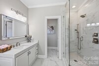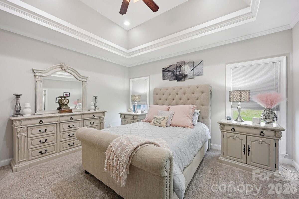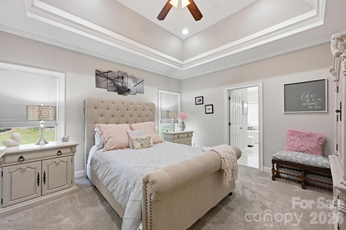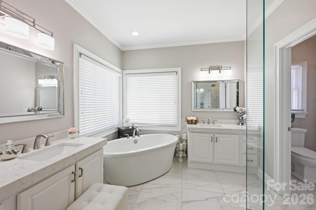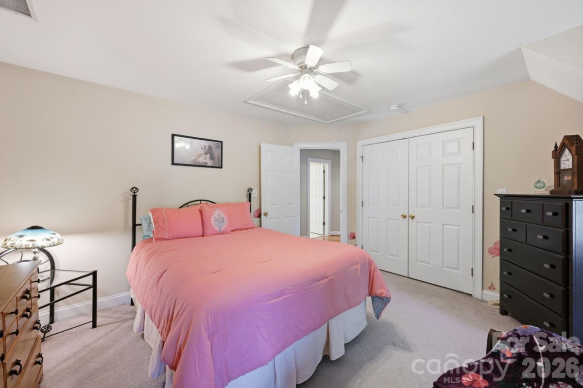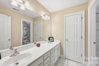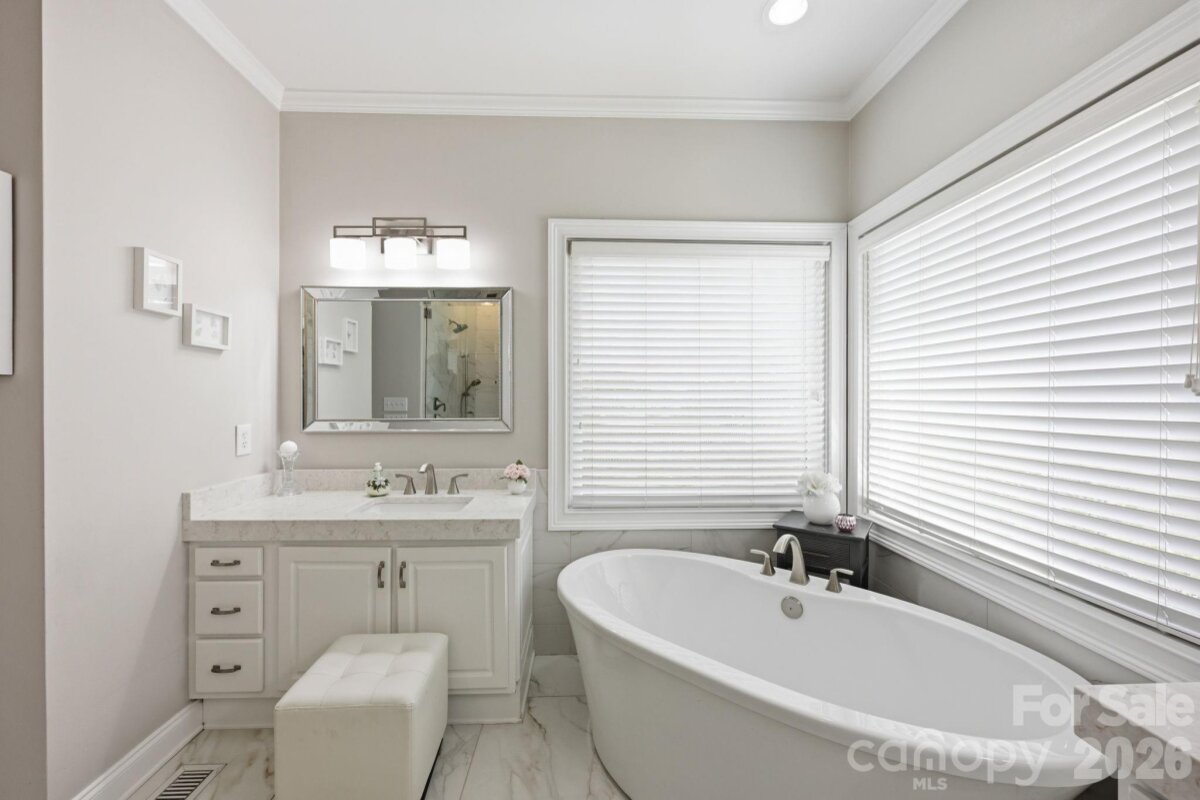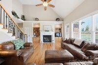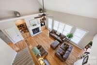 This beautifully maintained full-brick home is tucked on a cul-de-sac lot of over 3/4 acre, offering a thoughtful blend of space, comfort, and standout features both inside and out. The inviting exterior showcases a covered front porch, manicured landscaping, and a private backyard retreat complete with an in-ground pool featuring built-in stone benches, fully fenced back yard, and an additional partially fenced area in the far back corner of the fenced yard. The pool pump and filter were replaced in 2024, adding peace of mind for the next owner. Inside, the two-story foyer welcomes you with abundant natural light, hardwood floors, and elegant architectural details that continue throughout the home, including arched openings, crown molding, and custom built-ins. The two-story great room features a gas log fireplace with decorative mantle and flanking built-ins, while the kitchen offers granite countertops, stainless Whirlpool appliances including a double-oven smooth-top range with 5 burners, both a breakfast bar and large breakfast nook for less formal dining, and a built-in buffet for added storage and functionality. The nearby laundry room offers a large closet for a pantry or extra storage. The main-level primary suite provides a spacious retreat with a tray ceiling, dual walk-in closets, and a beautifully updated bath featuring a freestanding tub, tiled shower with frameless glass, and dual vanities. Upstairs, additional bedrooms offer flexible space for a variety of needs, along with a full bath and hardwood flooring in the landing. Practical features include a security system, irrigation, epoxy-finished garage with built-ins, and a spacious laundry room with added storage. Tucked back in a neighborhood with no HOA dues, conveniently located near I-77, shopping, and dining, and within the award-winning Mooresville Graded School District, this home combines a desirable location with everyday livability and inviting outdoor spaces.
