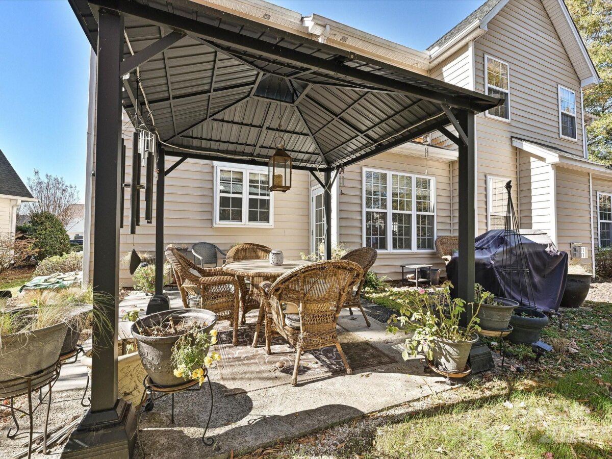 Located on a quiet cul-de-sac and minutes from shopping, restaurants, and easy access to highways and the airport, this charming 4-bedroom, 3-bath home offers a welcoming feeling of home. The bright two-story entry that leads to a comfortable formal living room and dining room—perfect for holidays, celebrations, or evenings with family and friends. The kitchen is ready for cooking and entertaining, featuring a gas range and oven, 42†cabinets, granite countertops, and a walk-in pantry with custom storage. Nearby, the laundry room includes a handy drop zone, utility sink, gas dryer hook up, and extra storage to help keep things organized. The family room, complete with a gas fireplace, provides a warm place to relax at the end of the day. A guest bedroom on the main level offers flexibility for visitors or a home office. Upstairs, the spacious primary bedroom is a perfect retreat with its own sitting room, soaking tub, separate shower, double vanity, and a large walk-in closet. Two additional bedrooms share a full bath, and the bonus room—with built-in storage—makes a great spot for crafts, hobbies, or work-from-home space. Carpets have all been recently cleaned. Step outside to the private backyard with mature landscaping. Enjoy outdoor meals on the expansive patio with a pergola and a gas line ready for your grill. If you love gardening, you’ll appreciate the potting shed/work shop equipped with water, electricity, and space to create.