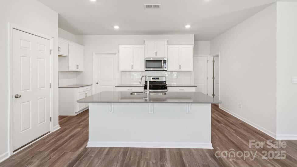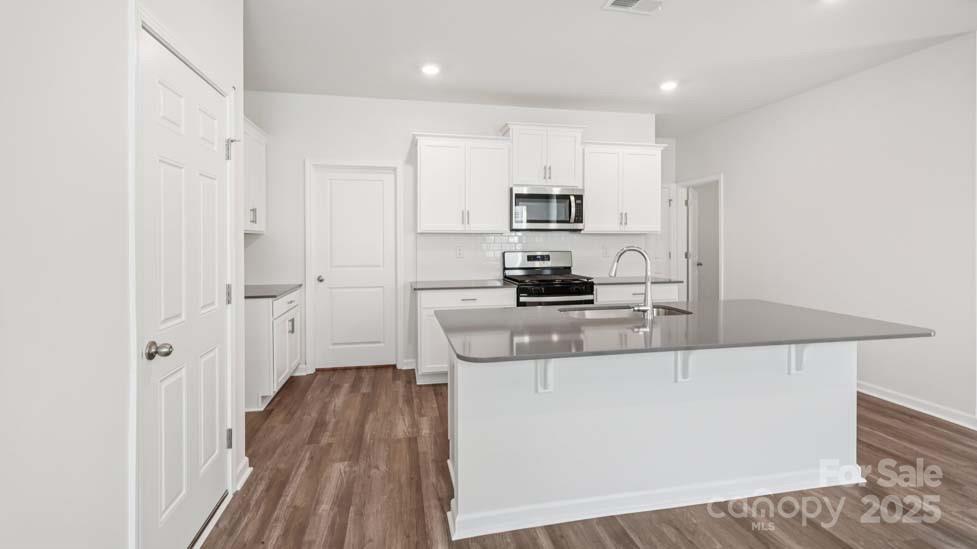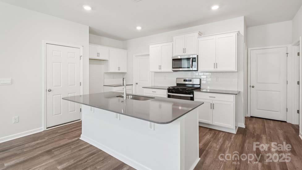Furnished Model home of this plan available to view on site! New community just 1.5 miles from downtown Troutman. Guest Bed/Bath on Main Level! Wide foyer leads to an open kitchen & family room. Kitchen highlights a center island w/ Quartz Countertops, Shaker cabinets, stainless gas range appliance pkg. Large corner pantry space. Gas log fireplace & decorative mantle adorn the family room. Spacious primary bath features a 5 ft glass door shower w/separate garden tub, double vanity, separate water closet and large WIC. Convenient upstairs laundry room, 3 additional beds, hall bath w/ double sinks and loft completes the 2nd floor. Beautiful upgrades such as 2" faux wood blinds, LVP flooring on first floor (minus bedroom) and in all baths, wrought iron spindles at staircase and sleek LED lighting. Smart Home package and warranty included. Closing costs available with DHI Mortgage! Convenient to 77 and Mooresville.