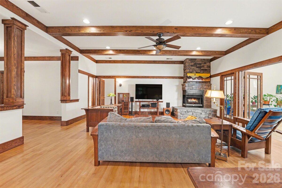 Located in the gated Harbor Watch community with Lake Norman access, this property offers a rare combination of privacy, space, and flexibility on 3.25 wooded acres. Set well off the road with a long driveway, the home provides a level of seclusion that is hard to find within a gated neighborhood. The home features 4 bedrooms and 3.5 bathrooms with a semi-open layout, custom woodwork, and built-ins throughout. The kitchen includes a gas stove and butcher block countertops and opens into the main living areas with hardwood floors and a wood-burning fireplace. A dedicated office adds additional functionality for remote work or flex space needs. A fully finished basement and in-law suite create ideal options for multi-generational living, guest space, or additional living flexibility. Storage is abundant with an oversized two-car garage, a walk-in attic, and a 7-foot crawl space. Outdoor living is a major highlight with a sunroom, two back decks with stairs, a covered front porch, side porch, patio, and a fenced yard. The long driveway allows for parking of five or more vehicles, which is a rare feature in this area. Built to hurricane specifications and featuring a 30-year roof installed. This home offers both durability and peace of mind. For buyers seeking privacy, usable space, and access to Lake Norman within a gated community, this property stands apart from others currently on the market.