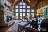146 Sarinac Drive offers 4,120 square feet of refined mountain living across three finished levels, built in 2019 and set on a wooded 3.97-acre property with year-round, long-range western mountain views. Constructed with white pine half-log siding, LP SmartSide, Superior Walls foundation, metal roof accents, and Cardinal windows, the home reflects quality materials inside and out. The main level features 8-inch engineered hickory hardwood flooring and a vaulted tongue-and-groove ceiling in the great room. A wall of windows anchors the space, along with a rock gas fireplace featuring copper accents, a raised hearth, and wood beam mantle. French doors lead to a large back deck with cable railing and cedar beam details. The kitchen includes a bay window over the sink, granite countertops, shaker-style maple cabinetry with pantry pullouts, subway tile backsplash, stainless appliances to include a gas range with griddle, Samsung refrigerator, Bosch dishwasher and GE microwave. The main-floor primary suite includes deck access, shiplap walls, ceiling fan, walk-in closet, and a full bathroom with granite counters, dual vanity with makeup area, semi-frameless tile shower with body jets, rain head, handheld, built-in bench, cubbies, and a private water closet with bidet. A powder room and laundry room complete the level. The upper floor features a Douglas fir staircase with spacious landing, an open loft with railing overlooking the great room, two bedrooms (one with a walk-in closet), a full bath with dual marble vanities, linen storage, and a shower/tub combination. The lower level includes vinyl plank flooring, two large flex spaces, a full bath with granite vanity and tiled shower/tub, an additional bedroom with walk-in closet, an unfinished storage/mechanical room with shelving, and walk-out access to a covered patio. Stairs lead to the gravel fire pit area and up to the garage. Exterior living spaces include a wraparound porch with cable railing and a tongue-and-groove ceiling, screened porch with a rock wood-burning fireplace and dual access to the deck and great room. The expansive back deck offers westward mountain views and seamless access from the primary bedroom, great room, and screened porch. To learn more about this exceptional property or to schedule a private showing, please reach out to the listing agent with any questions. HOA dues are $720 as the property is made up of two combined lots ($360 yearly x 2).