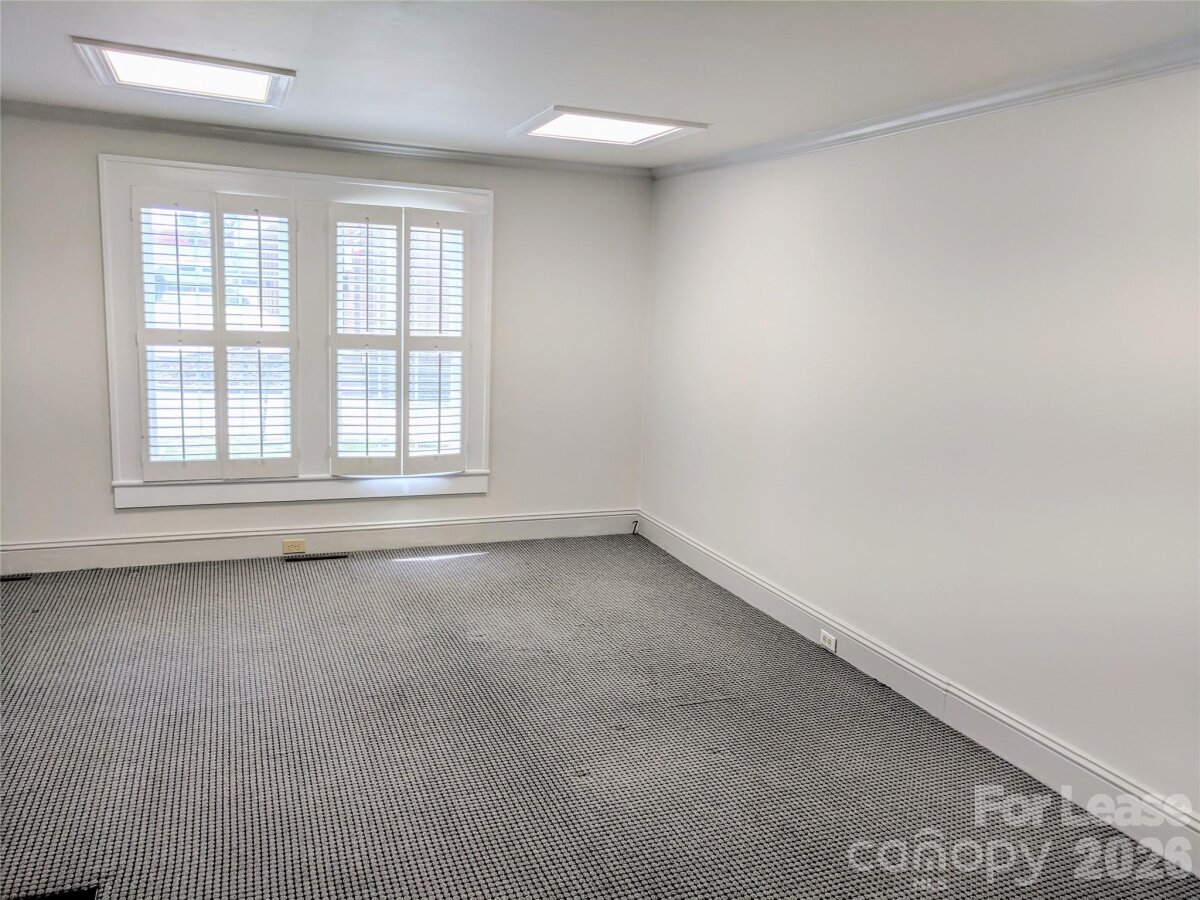 Office Space Coming Available. Office space with a full kitchen, 13'*17' reception area, 12'*13' private office, 6'*9' data room, 14'*17' conference room or private office, 12'*13' private office, and 12'*13' private office. Sufficient interior storage and a detached storage building. Partially fenced rear lot with (1) covered parking space and 6+ additional parking spaces. Great visibility on W. Statesville Avenue close to Main Street.