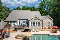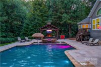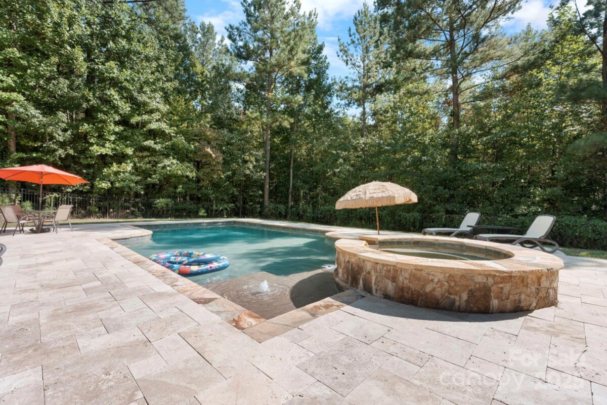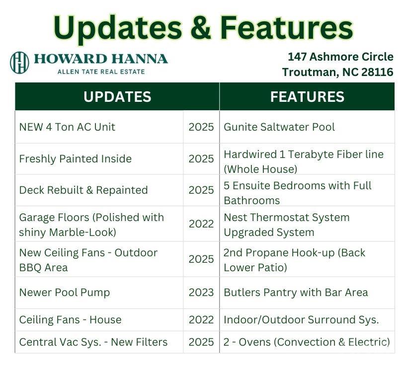RESORT-STYLE LIVING IN FALLS COVE! This custom 5-bedroom, 4.5-bathroom home blends elegance, comfort, and functionality. Curb appeal is undeniable, and the backyard retreat boasts an 18’x42’ gunite saltwater pool and spa surrounded by travertine tile. The covered outdoor kitchen features dual (gas/wood) fireplace, grill, refrigerator, table with fire feature, 1 stove top, sitting bar, and a new fan. >>> INSIDE, an open-concept great room with coffered ceiling and stacked-stone fireplace flows to a chef’s kitchen with oversized island, granite counters, stainless appliances, double ovens, and butler’s pantry. Just off the kitchen is a bright and airy sunroom overlooking the pool, filling the home with natural light. >>> THE MAIN LEVEL primary suite has a door leading to the deck and pool area. It features a spa-like bath with soaking tub, walk-in shower, dual vanities, and two closets. Guests enjoy a PRIVATE ENTRY IN-LAW SUITE that opens to the pool area and has direct access to the rest of the home, while UPSTAIRS offers three ensuite bedrooms and a media room. Hand-scraped hardwoods and whole-home surround sound complete the interior. The deck off the sunroom, kitchen, and primary suite has been completely rebuilt and freshly painted. >>> See the full list of Updates & Features shown in the photos. Other features include: Central Vac (Dirt Devil), new 4-ton A/C, fresh paint, and even a 3-car garage with polished marble-effect floors and built-ins. >>> THIS HOME TRULY HAS IT ALL: resort style, comfort, and an unbeatable location near shopping, dining, highly sought after schools, and with the benefit of low Iredell County taxes. >>> All outdoor and patio furniture is negotiable, as is the pool table and supplies.