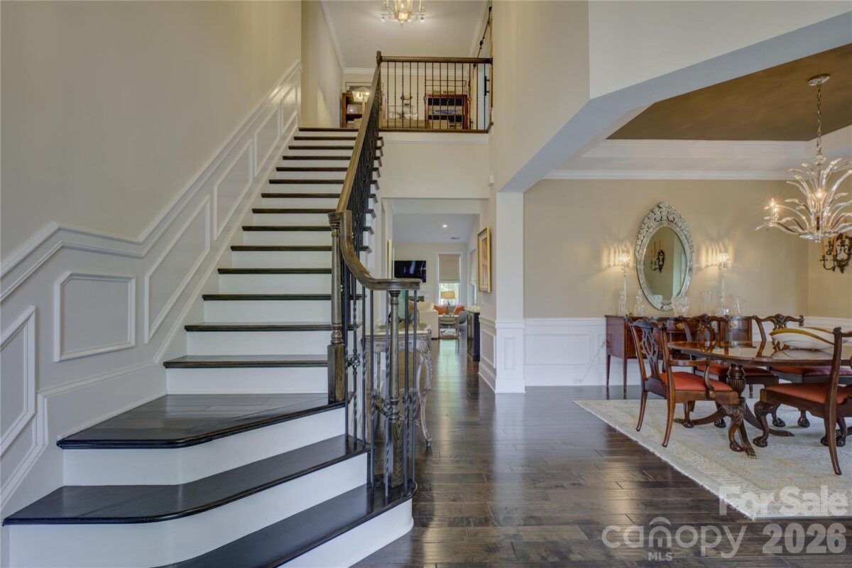 Located in the amenity-rich Regency at Palisades, just moments from the impressive clubhouse and amenity center, this beautifully appointed home welcomes you with a double-door entry featuring decorative glass panels that open into a grand two-story foyer. A formal sitting room or private study with arched windows fills the space with natural light, while the elegant dining room showcases classic wainscoting, a tray ceiling, and a charming bay window. The gourmet kitchen is a chef’s dream, with an oversized granite-topped prep island with a single-bay sink, a gas range with an exhaust hood, and abundant cream cabinetry, all flowing seamlessly into the breakfast area and out to a screened porch—perfect for enjoying Carolina’s mild seasons. The great room, anchored by a cozy gas fireplace, enhances the open-concept design ideal for both everyday living and entertaining. The luxurious primary suite features a tray ceiling, dual vanities, an oversized glass-enclosed shower, and a custom closet, while a main-level guest suite with a hall bath adds convenience. Upstairs offers a versatile loft with barn door, private office, and a third bedroom suite with full bath, providing flexible living space. Residents of Regency at Palisades enjoy resort-style amenities including a clubhouse, pool, fitness center, tennis and pickleball courts, and an active social calendar, all set within one of the area’s most sought-after communities.