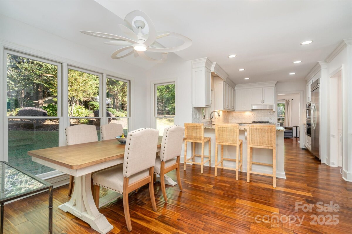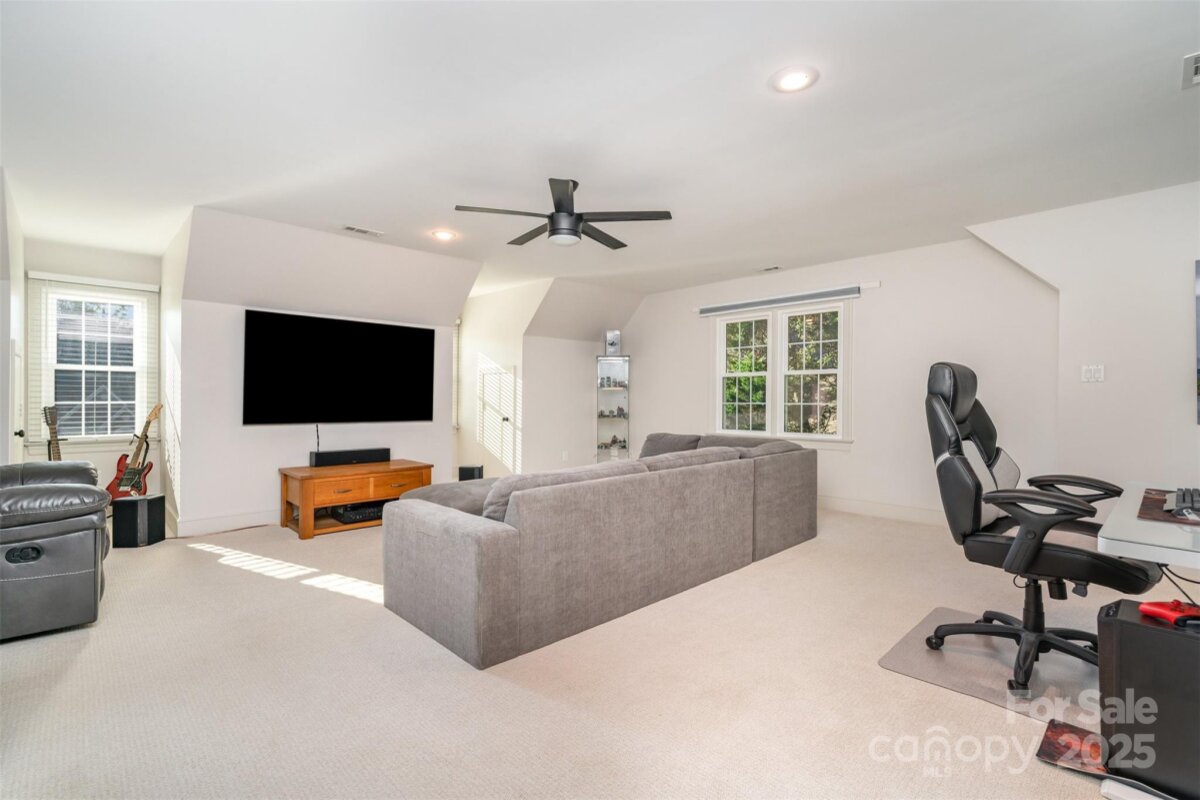 WATCH VIDEO TOUR! (If viewing on Zillow go to facts and features - see more - virtual tour). Welcome to this stunning estate in the highly desired Wynfield community. Home sits on a .60 cul-de-sac lot and exudes luxury and curb appeal with the all brick white facade. UPDATES INCLUDE 21 front & side windows w/ lifetime guarantee. Inside updates include new oven & microwave, 2 loft fans, all interior paint including ceilings, walls, doors & woodwork, gutter guards installed and new primary bath w/ ledge. Property is just minutes from I-77 providing a convenient commute in and around the Charlotte area plus is near the popular shops & restaurants of Birkdale Village! As you enter the beautiful formal entryway you'll find a home office w/ french doors to the left and living room w/ focal fireplace and custom built-in's w/ bench seating on your right. Hardwood floors flow throughout main level creating a seamless flow from room to room. Gourmet kitchen is a dream to cook in and features matching S.S appliances, granite counters, marble backsplash plus breakfast bar for seating and spacious walk-in pantry for plenty of storage. Primary bedroom has tray ceiling and attached spa like bath with glass & tile shower, vanity w/ dual sinks & walk-in closet featuring custom organizer. 3 additional bedrooms upstairs and beautiful full bath great for family & friends. Oversized upstairs bonus room perfect for game area, media space, or secondary family room. Out back, enjoy every season with plenty of shade & privacy from the mature trees in the fully fenced in yard plus patio area for grilling. Side load garage w/ epoxy flooring provides plenty of parking & storage. This home is not to be missed!
