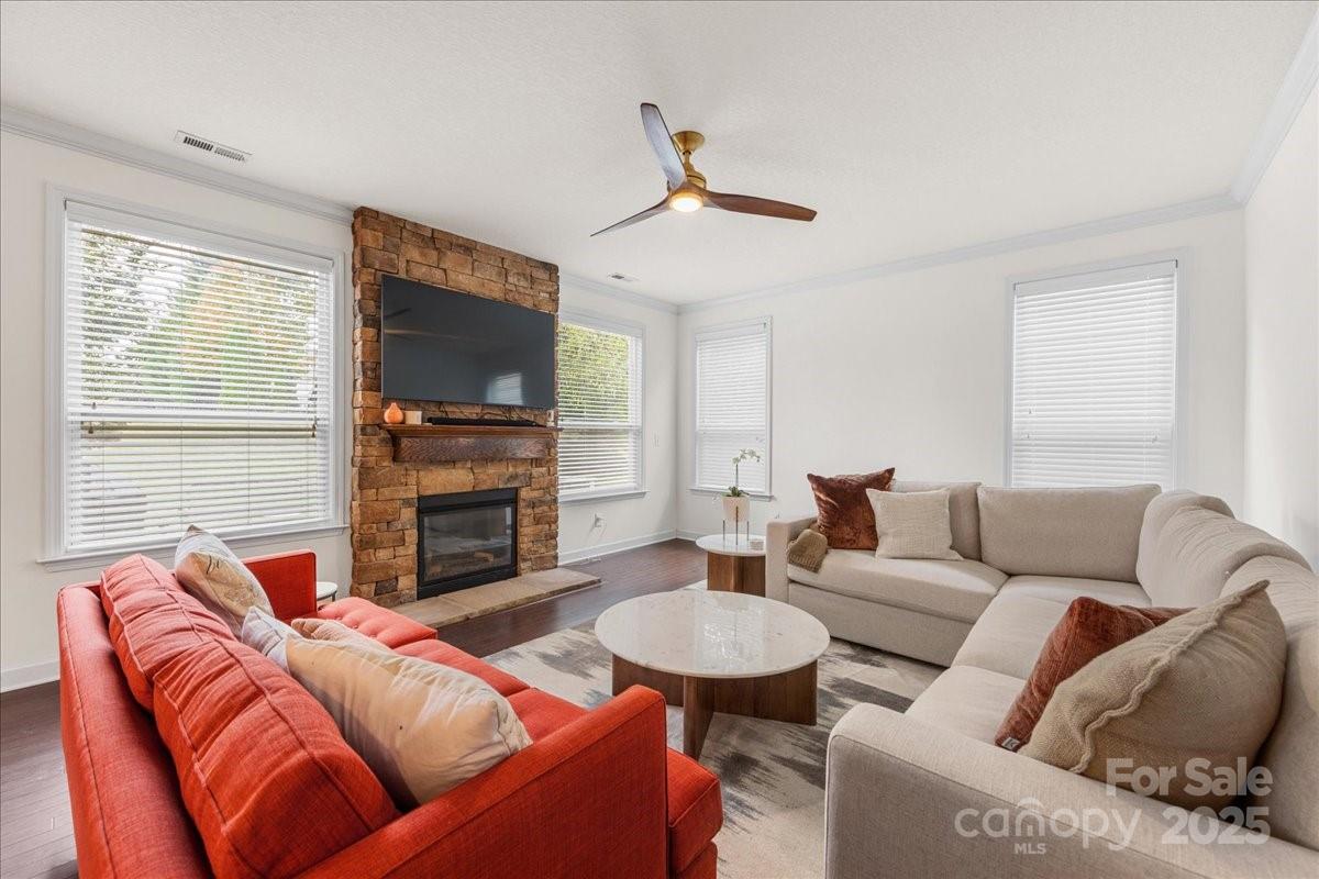 Nestled in the highly sought-after SKYBROOK community, this freshly painted, move-in-ready home exudes warmth, sophistication, and comfort. Designed for modern living, it's filled with natural light and features timeless finishes throughout. The main level showcases rich hardwood floors, an inviting open-concept kitchen with granite countertops, 42" white maple cabinetry, and stainless steel appliances, including a gas cooktop and double oven. Seamlessly connected to the breakfast area , sunroom, and spacious family room- anchored by a ceiling-height stone fireplace- this home offers effortless flow for everyday living and entertaining. Versatile spaces include a welcoming front living room/ home office space, and an upstairs loft- ideal for work, play, fitness or relaxation. The elegant primary suite features French doors, a trey ceiling, and a spa-inspired bathroom. Three additional bedrooms upstairs with one being large enough to call a Bonus Room. The Skybrook community offers resort-style amenities including a golf course and driving range, Swim and Racquet Club, a pond, walking trails, playground, soccer and b-ball fields, and all are located close to this home on a quiet street. Check it out today!