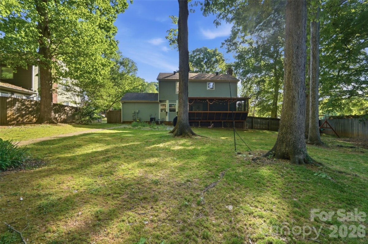 Welcome to 14815 Rothwell Drive in the heart of Mint Hill—where comfort, space, and convenience come together. This well-maintained two-story home offers a bright and open layout with a welcoming foyer and a cozy fireplace that anchors the main living area. The kitchen features granite countertops, stainless steel appliances, and a layout that overlooks the backyard—perfect for everyday living and entertaining. Upstairs, the primary suite includes vaulted ceilings, dual vanity sinks, and a spacious walk-in closet, creating a relaxing retreat at the end of the day. Step outside to enjoy the screened-in porch and private, fenced backyard with a wooded backdrop—ideal for quiet mornings or unwinding in the evening. Located just minutes from I-485, this home offers easy access to everything Mint Hill and the greater Charlotte area have to offer while still providing a peaceful setting. If you’re looking for a move-in ready home with great features, a functional layout, and a convenient location—this one is worth seeing in person.
