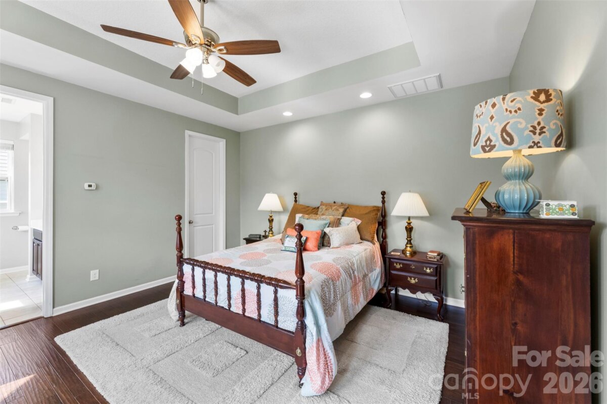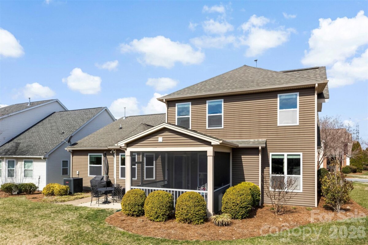 HIGHEST/BEST OFFERS by 5PM on 3/07! Tucked on a beautiful corner lot in the heart of Skybrook, this home is a true gem. A charming rocking chair front porch welcomes you and offers the perfect spot for morning coffee, while the screened back porch provides a peaceful place to unwind after a long day. Step through the double front doors into a warm and inviting foyer, where the dining room sits just off the entry and is accented by elegant arched doorways that add timeless character and charm. The gourmet kitchen is designed for gathering, featuring abundant cabinet and counter space, an oversized island, gas stove, and stainless steel appliances, all flowing into the spacious family room with a cozy fireplace. The main-level primary suite offers a relaxing retreat with double vanities, a soaking tub, and a large walk-in closet, with convenient laundry just steps away. Upstairs, a versatile loft creates the perfect space for a media room, home office, or game room, while the generous secondary bedrooms share a Jack-and-Jill bath. Don't forget to check out the large storage room. Lawn care is included, giving you more time to enjoy everything Skybrook has to offer—from neighborhood pools and scenic walking trails to the championship golf course. This beautifully maintained home is the perfect blend of comfort, charm, and lifestyle.
