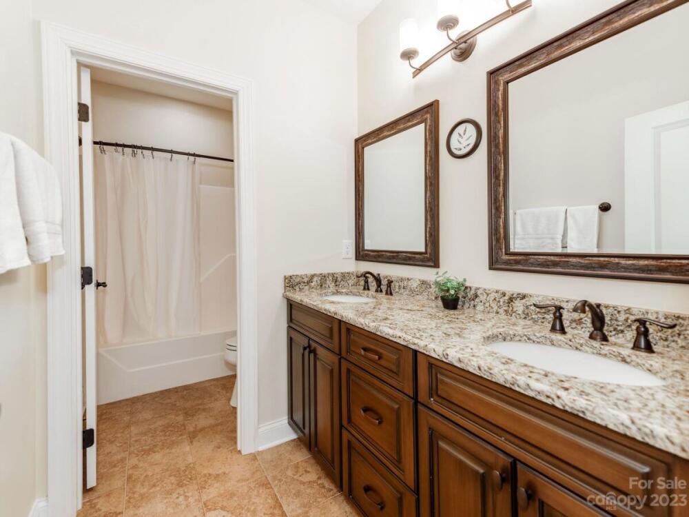 This magnificent home could be yours! Inviting curb appeal with cut stone, cedar shake and brick. Gorgeous foyer with beautiful chandelier, crown molding and wide baseboards through out the home. Large kitchen with granite countertops, breakfast bar, kitchen island, wine fridge and amazing farmhouse sink. Eat in dining area with large space to entertain. Large great room with tons of natural light, built-in entrainment center, gas fireplace and French doors to spectacular back yard. Primary bedroom with large space to accommodate a sitting area. Primary bathroom with dual sink vanity, glass enclosed shower, garden tub and large walk in closet. 2 additional bedrooms with large closets and a full bathroom to share. Beautiful half bathroom and large laundry room with a drop zone and laundry sink. Second floor features a bonus room with large closet and attic access. Fully fenced backyard with covered patio, nice landscaping and views of Baker's Mountain. This home is move in ready!
