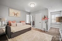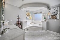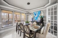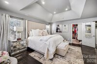 This exceptional custom home in Arlington Forest blends timeless architecture with modern luxury across more than 4,300 square feet of beautifully finished living space. Privately set on nearly half an acre, the property is surrounded by mature trees and wooded views, creating a serene retreat just minutes from the conveniences of Charlotte. From the moment you arrive, the stately exterior, circular driveway, and attached two-car garage set the tone for the elegance found inside. A grand foyer welcomes you with sweeping architectural details, extensive millwork, tray ceilings, and gleaming wood floors that flow throughout the main living areas. The two-story layout offers five spacious bedrooms and four full baths, including a luxurious primary suite designed for comfort and indulgence. The chef’s kitchen is both stunning and functional, featuring a large center island, custom built-in cabinetry and walk-in pantry. Designer lighting and premium finishes elevate the space, while seamless flow into the dining and living areas makes it ideal for both intimate gatherings and large-scale entertaining.This home also offers a private bedroom and full bath on the main level—perfect for guests, multigenerational living, or a dedicated secondary suite The primary suite is a true sanctuary, highlighted by an expansive walk-in closet and spa-inspired bath complete with a garden tub, dual vanities, and a beautifully tiled walk-in shower. Secondary bedrooms are generously sized, and additional flexible spaces—including an office and bonus areas—provide versatility for work, fitness, or recreation. Storage is abundant throughout the home with extensive closet space, and a crawl space foundation offering additional utility. The upper-level laundry room adds convenience, while thoughtful built-in features enhance organization and everyday living. There is an large unfinished space above the garage perfect for additional storage or adding additional square footage to the home. Outdoor living is equally impressive. A covered deck overlooks the private, fenced backyard, offering a peaceful setting for relaxing or entertaining amid mature landscaping and wooded surroundings. With a paved, publicly maintained road and no HOA, the property offers both privacy and freedom. This is a rare opportunity to own a refined, move-in-ready luxury residence that combines elegant design, extensive upgrades, exceptional storage, and a tranquil setting—while remaining close to shopping, dining, and major thoroughfares.