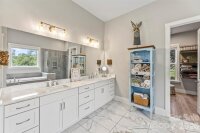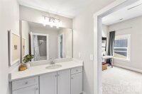 Welcome to the prestigious Belmont Community at McLean South Shore! Located just off the shores of Lake Wylie, this state-of-the-art modern farmhouse with open floor plan, and pool and spa is gorgeous; inside and out! The gourmet kitchen with expansive island and plenty of quartz counters opens to the living and dining areas. The primary bed with custom closet and a spa-like bath with dual vanities is one of two suites on the main level! The junior suite is just off the kitchen with its own full bathroom allowing main floor and privacy for your guests. Ten foot ceilings throughout and the livingroom 20 foot vaulted for that airy open feel. Bring your guests and gather. The flat fenced backyard includes an underground invisible dog fence and built in irrigation system. around the fire pit, take a dip in the heated saltwater PebbleTEC pool and spa. There is plenty of room to entertain. The additional three bedrooms are on the secondary level; two share a Jack & Jill bath and one with a private en-suite. The three-car garage includes an EV charging station for your electric car. This prestigious community features a Presidential-style clubhouse with Olympic-sized pool, gym and event center available for your convenience. There is also a kayak launch, beach area and two scenic ponds. Explore the thread trails connecting to Daniel Stowe Botanical Gardens and The Carolina Thread Trail, offering miles of views of Lake Wylie! Enjoy the short golf cart ride or walk to the Morningstar Marina, where you will store your water vessel and enjoy a bite to eat at Drift: the lake's best fine dining restaurant.