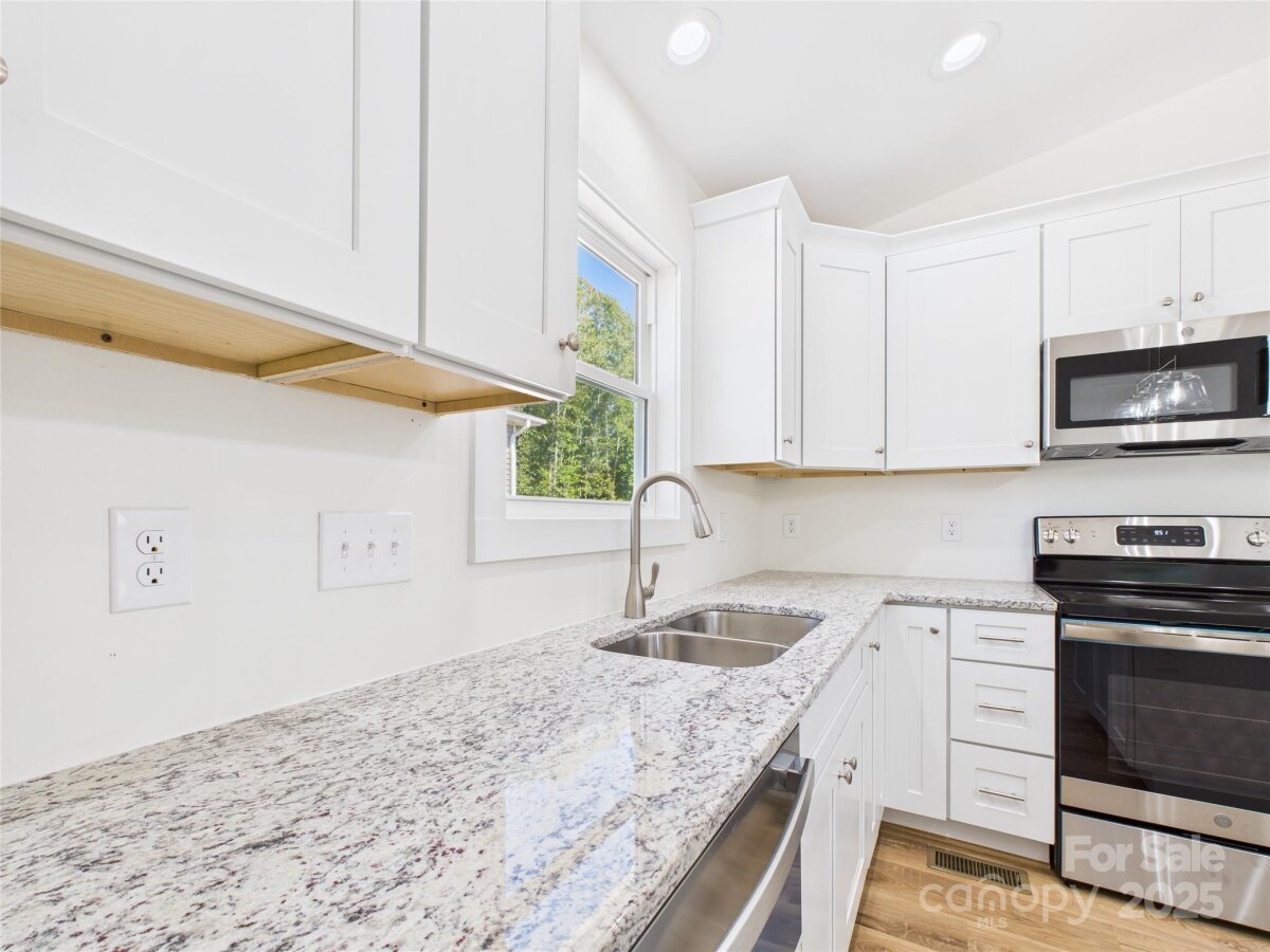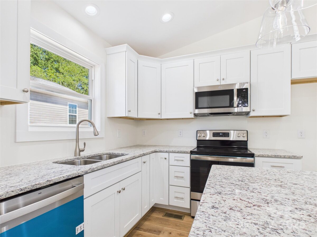 Complete and ready to move in NEW CONSTRUCTION 3 bed ranch home featuring 2 FULL bathrooms! Location, Location, Location, super convenient to US 321 for a quick commute to the Hickory and Lenoir areas or further down 321 to Lincolnton and Gastonia, quick 1 hour trip to Charlotte Douglas Airport. This 1092 square foot home features an open dining and living area with vaulted ceiling that opens up to a spacious deck perfect for entertaining. Beautiful granite countertops over custom cabinetry with a breakfast bar, stainless appliances, and vinyl plank flooring throughout. A spacious primary suite with a tray ceiling, walk-in primary shower with bluetooth exhaust fan. This home offers a Ring doorbell with rear light and camera. Concrete parking and sidewalk. 1 year builder warranty included. This home is located in a USDA eligible area for financing options. You don't want to miss this one!!
