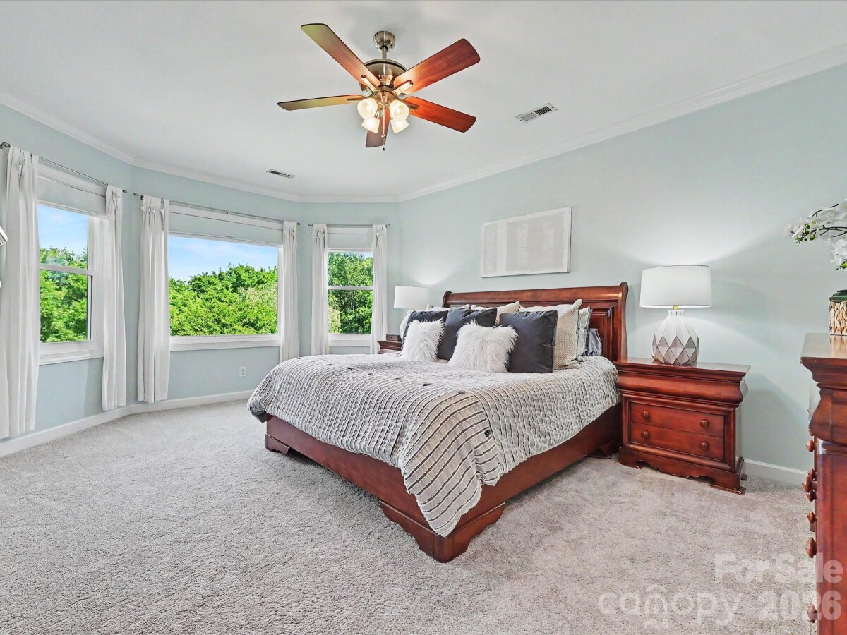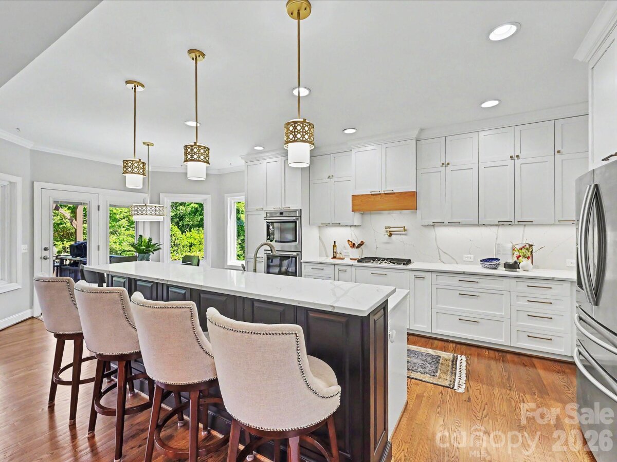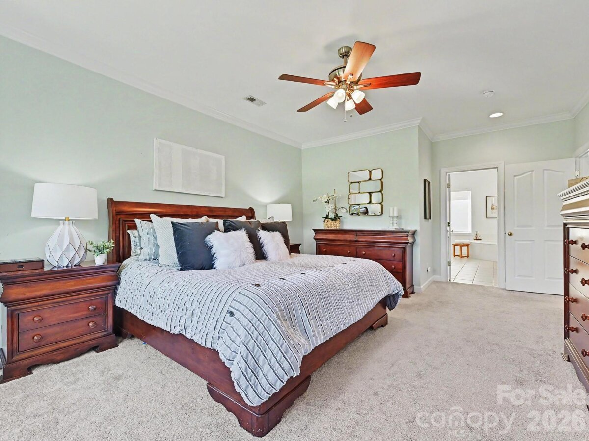 This thoughtfully updated home offers both comfort and functionality, featuring five bedrooms, three full bathrooms, and a versatile bonus room to fit your lifestyle. A main-level bedroom provides the perfect setup for guests or a private home office. The heart of the home is the expansive, renovated kitchen with custom cabinetry and quartz countertops, complemented by bay windows that fill the space with natural light. Hardwood floors throughout the main level, custom lighting, and built-in bookcases create a warm, elevated living space centered around a cozy fireplace. Upstairs, the spacious primary suite features bay windows and a beautifully updated bath with a garden tub, offering a true retreat. Major recent upgrades provide peace of mind and real value, including: New upstairs HVAC (2026) and downstairs HVAC (2024) New front and rear doors (2026) New carpet and fencing (2024) Updated windows (2022–2023) Roof replaced (2011) Step outside to an oversized deck overlooking a private, fenced backyard with a putting green—perfect for entertaining or relaxing. Located in one of Ballantyne’s most desirable areas, this move-in ready home combines thoughtful updates, functional living, and long-term value.