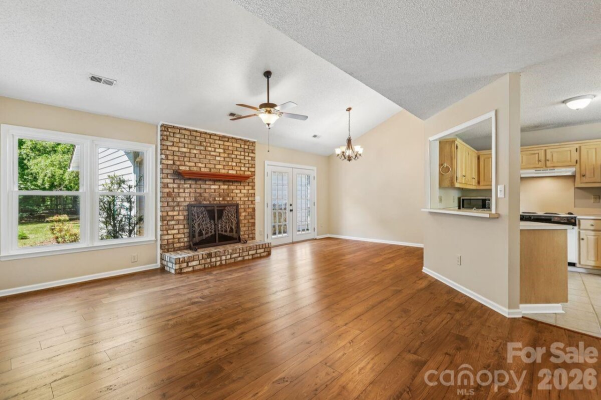 Welcome home to 15032 Catawba Circle in the established Cherokee Woods community of Matthews. This charming 3-bedroom, 2-bath ranch offers an easy, open layout that’s perfect for both first-time buyers and those ready to step into their next chapter of homeownership. From the moment you walk in, vaulted ceilings and a cozy fireplace create a warm, inviting space you’ll be proud to call home. Whether it’s your first dinner party, quiet nights in, or celebrating milestones in your own space, this home is designed for real life and new beginnings. Set on a spacious, nearly half-acre lot, there’s room to grow, entertain, and truly make it yours—garden, host, or simply enjoy the freedom that comes with owning your own home. With a detached 2 car garage you have room for parking or storing toys! Conveniently located near shopping, dining, and everyday essentials, this is more than just a house—it’s your next chapter. Affordable, inviting, and full of potential, this is the opportunity you have been waiting for.