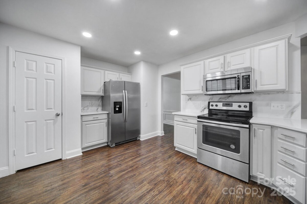Welcome to this beautifully renovated 3-bedroom, 2-bath ranch in the sought-after Silverstone community! This home has been thoughtfully updated from top to bottom, offering a perfect mix of comfort, style, and convenience. Recent renovations include a new roof, upgraded gutter system, removal of 18 large trees, and refreshed landscaping. Inside, you’ll find all-new lighting, ceiling fans in the bedrooms, recessed lights in the kitchen, new granite countertops with sink, updated plumbing, and fresh paint throughout—including ceilings, trim, doors, vents, and cabinetry with modern hardware. Additional upgrades feature new flooring, enhanced baseboards, a bathroom window, new door handles, and a stylish new vanity. The large, private backyard creates the perfect setting for entertaining or unwinding outdoors. Ideally located near the light rail, I-485, shopping, dining, IKEA, and UNCC, with easy access to Uptown Charlotte. This move-in ready ranch offers modern comfort in a prime Charlotte location—don’t miss it!