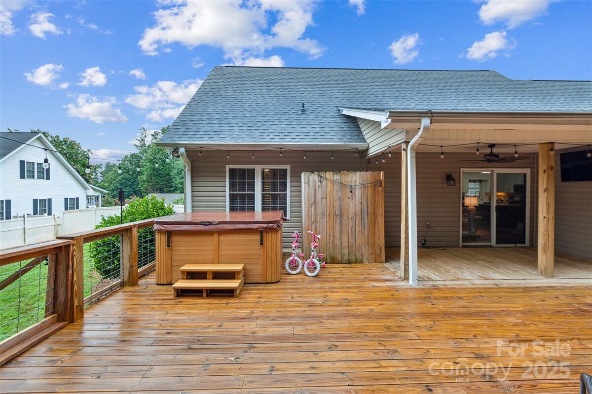 Welcome to this beautifully maintained 3-bedroom, 2-bathroom home located in the heart of Rutherfordton, just minutes from local amenities, shopping, and dining. With an open-concept floor plan, this home offers the perfect blend of comfort and functionality. Step inside to find a spacious living room with a cozy fireplace, ideal for relaxing or entertaining. The modern kitchen features sleek finishes and ample counter space, flowing seamlessly into the main living area for a bright and airy feel. Enjoy the convenience of a separate laundry room, a two-car garage, and an attached carport—plenty of space for parking and storage. Outdoors, you'll love the covered front porch and the partially covered back deck, perfect for year-round enjoyment. A hot tub is already in place and may stay with the home if the buyer is interested.