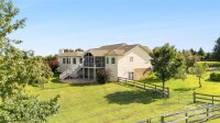 Now offered with 20 acres, discover refined country living on this exceptional working farm, thoughtfully designed for those seeking a comfortable home for both themselves and their animals. Opportunities like this are increasingly rare, and the seller is prepared to move forward, making this an ideal time to secure a property of this caliber. The seller also owns additional adjoining acreage and is open to discussing boundary adjustments or expanded acreage options. The home must convey with a minimum of 10 acres, with up to 36 total acres available, allowing flexibility for future growth. A secure electronic gated entrance welcomes you to a stunning custom Hardiplank residence surrounded by fenced pastures, some equipped with Nelson automatic waterers, run in sheds, and a six stall barn complete with its own septic system, riding ring, wash rack, and tiled feed and tack room featuring a window unit and dishwasher. A productive stand of blueberry bushes helps maintain low property taxes through an agricultural tax discount, adding both charm and long term value. Inside, the home opens to a grand foyer with soaring vaulted ceilings and custom barn doors leading into the formal living room accented by recessed lighting and a tray ceiling. The heart of the home offers open concept living with a chefs kitchen featuring granite perimeter countertops, a butcher block center island with a GE double oven gas range, Bosch dishwasher, and French door refrigerator. The kitchen flows seamlessly into the keeping room with a stone fireplace and dining area overlooking peaceful pasture views. The primary suite is a retreat of its own, offering breathtaking sunsets and private access to the deck and screened porch with vaulted, wood lined ceilings framing spectacular mountain views. The ensuite bath includes dual vanities, a walk in tile shower with curtain drain, a jetted tub, and a spacious walk in closet. Two additional main level bedrooms share a full bath, while a recently remodeled half bath with marble tile adds a refined touch. The walk out basement features a finished bonus room opening to an oversized concrete patio with 220V power, ideal for a hot tub, along with expansive unfinished space for storage or future expansion. Outdoors, the property is well suited for equestrian use or hobby farming, with fenced pastures, barn, outbuildings, and well water. Enjoy miles of community riding trails extending all the way to Airport Road, endless opportunities for horses, cattle, or small livestock, and the tranquility of mountain views from your own porch. Horses and cows currently on the property are available for purchase, offering a turnkey opportunity for the right buyer. New flooring has been installed throughout much of the home as of October 2025. With an acceptable offer, the seller will repaint the exterior of the home and barn. The seller welcomes well structured offers and is prepared to respond promptly, creating an excellent opportunity for qualified buyers.