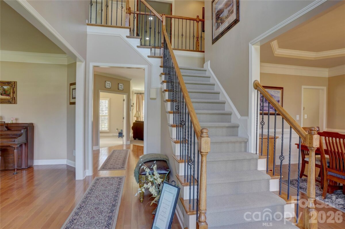 Welcome to 15100 Durmast Court in the desirable Fairngton Oaks Community in Mint Hill- an exceptional full-brick estate nestled on a 0.80 acre cu-de-sac lot. Offering over 5,400 square feet of meticulously designed living space, this stunning 5-bedroom, 4.5 bath home delivers the perfect blend of elegance, comfort and versatility. The main level features a beautifully updated kitchen with quality finishes, granite countertops, stainless steel appliances including a double oven,center island and more, ideal for both everyday living and entertaining. Gather in the inviting living area highlighted by a cozy fireplace with gas logs.On the main level you will also find a formal dining room, flex room, bathroom and laundry/mud room. On the upper level you'll find 3 generous sized bedrooms, including the oversized primary suite with ensuite full bathroom.There is also a very large bonus room/office space with endless possibilities.The fully finished basement is a standout feature, complete with private interior and exterior access-perfect for multi generational living or guest accommodations. This incredible lower level includes a full second kitchen with bar seating, spacious living area, private bedroom (ideal as a second primary suite), full bath, fitness room, wine cellar and a dedicated media room equipped with a large screen and comfortable seating for the ultimate movie night experience. Outside you will be welcomed by a plush landscaped yard, a side load two car attached garage and a single attached garage, there is also a private patio in the back for family get togethers.Lower HOA fees while still enjoying the neighborhood pool and playground. This home truly has it ALL-space,functionality and luxury-just minutes from shopping, dining, and top conveniences in Mint Hill.