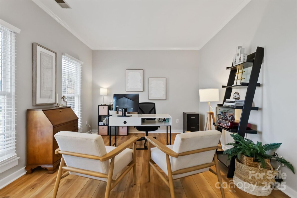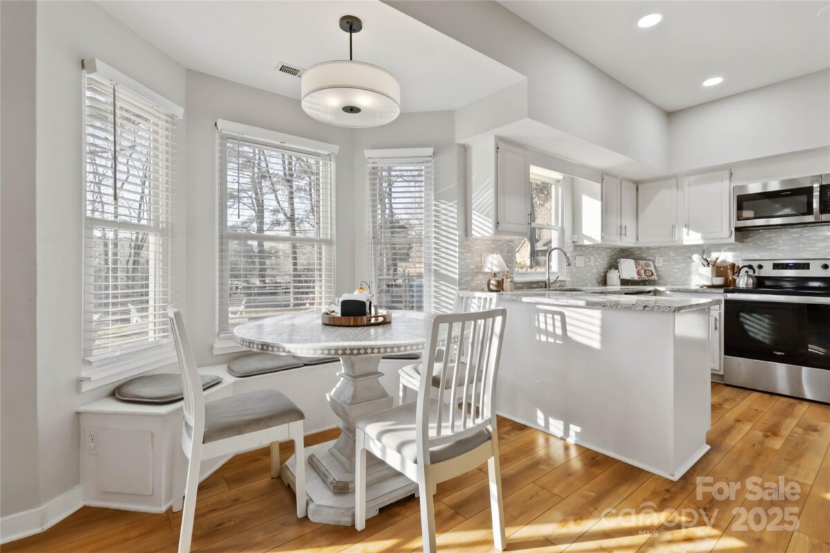 Tucked at the end of a quiet cul-de-sac in the beloved Oxford Glen community, this Mint Hill home feels like it was pulled straight from the pages of a storybook. Set on over half an acre, the property unfolds with a lush, fenced backyard—perfect for exploring, gardening, or simply watching the seasons change. A side-entry driveway and charming exterior invite you inside, where warmth and character instantly take over. Gorgeous plank flooring stretches across the main level, guiding you through light-filled rooms designed for both gathering and unwinding. The stunning white kitchen shines with granite counters, stainless steel appliances, custom pantry shelving, and thoughtful details like the 2023-built breakfast nook bench with sliding drawers—an ideal spot for morning coffee and conversation. A formal dining room and dedicated office add flexibility, while upstairs you’ll find four spacious bedrooms including a serene primary suite upgraded with Closets by Design. The backyard steals the show—a sprawling green retreat complete with raised garden beds and plenty of room to play, host, and dream. Over the years, the home has been lovingly updated: popcorn ceilings removed, fresh exterior paint, new lighting, new trim, new carpet, a cedar mantle, updated blinds, remodeled stairs and railing, and modern conveniences like automatic garage door openers, new dishwasher, and refreshed kitchen fixtures. Every space feels cared for. Every detail feels intentional. And every corner tells a story of a home designed to be lived in and loved for years to come. Welcome to your Mint Hill retreat—where comfort, character, and charm meet on the most perfect cul-de-sac lot.
