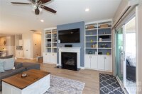Move right in to this impeccably maintained and highly upgraded one-level home in popular Creekshire Village. The fantastic layout features a dedicated home office with French doors, just off the foyer with a convenient drop zone. The updated kitchen offers stylish white cabinetry, quartz countertops, stainless appliances, and an expanded island. It connects seamlessly to the dining area and the spacious living room with fireplace and built-in cabinetry. From there, relax in the heated and cooled four-season room overlooking the incredible backyard, complete with a stamped concrete patio, outdoor cooking station with grill and Blackstone griddle, and paver-lined beds. The large primary suite is tucked at the back of the home and includes a renovated bathroom with dual vanity, roomy dual-head shower, and customized walk-in closet. There are three additional bedrooms and two well-appointed baths, including one ensuite. Notable upgrades include newer LVP flooring throughout the main living areas, upgraded carpeting in the bedrooms, closet organizers in secondary bedrooms, and a radiant barrier in the attic for added efficiency. The laundry room features a folding shelf and cabinetry, and there's a charging station/cabinet near the garage entrance. Enjoy living in this convenient community with a neighborhood pool. Welcome home!