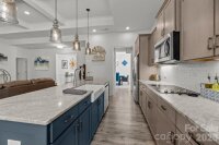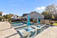 Set on a quiet cul-de-sac street, this custom Arts and Crafts–style home combines timeless architecture with modern livability. Stacked stone accents and fiber cement siding create lasting beauty and low maintenance, while the inviting front porch sets the stage for what’s inside—a home designed with care, comfort, and craftsmanship in every detail. Inside, the open concept unfolds with beautiful LVP flooring, detailed wainscoting, and elegant millwork throughout. The family room impresses with a coffered ceiling, gas fireplace, and transom-topped windows that fill the space with natural light. The kitchen makes a statement with its bold blue island, stainless steel appliances, tile backsplash, and pendant lighting. A butler’s pantry with walk-in storage, double wall ovens, and a separate cooktop makes entertaining effortless. The formal dining room offers the perfect setting for both intimate dinners and lively gatherings. The primary suite on the main level feels like a private retreat. A light-filled sitting area opens to the screened porch, while the ensuite bath showcases dual vanities, an oversized tile shower, and direct access to the walk-in closet and laundry room for thoughtful convenience. A second bedroom and full bath complete the main level. Upstairs, a third bedroom and full bath create the ideal guest or flex space, with every bedroom enjoying its own private bath access. Step outside, and the home truly shines. The screened porch overlooks a fenced backyard bordered by trees. The heated pool and spa take center stage—featuring color-changing LED lighting, a sun shelf for lounging, and full Aqualink remote control. An expansive patio with pergola-covered grilling, dining, and seating areas invites hours of outdoor living, while still leaving plenty of yard space for play, gardening, or pets. Every detail of this home has been designed to balance sophistication and comfort—creating a space that feels both refined and welcoming.