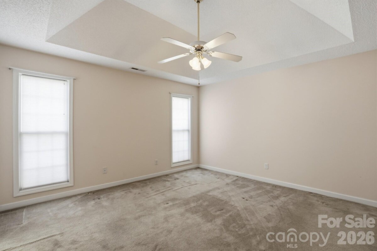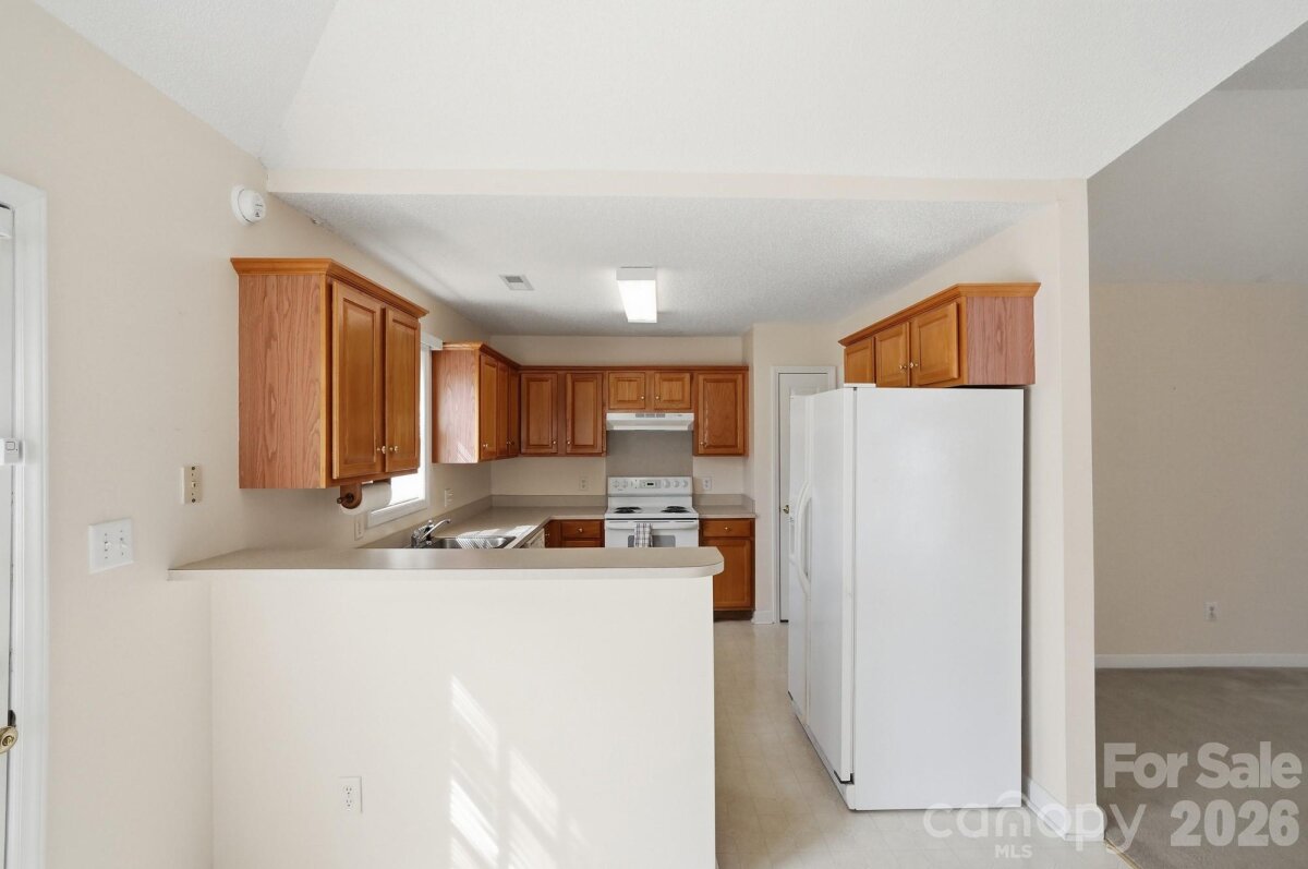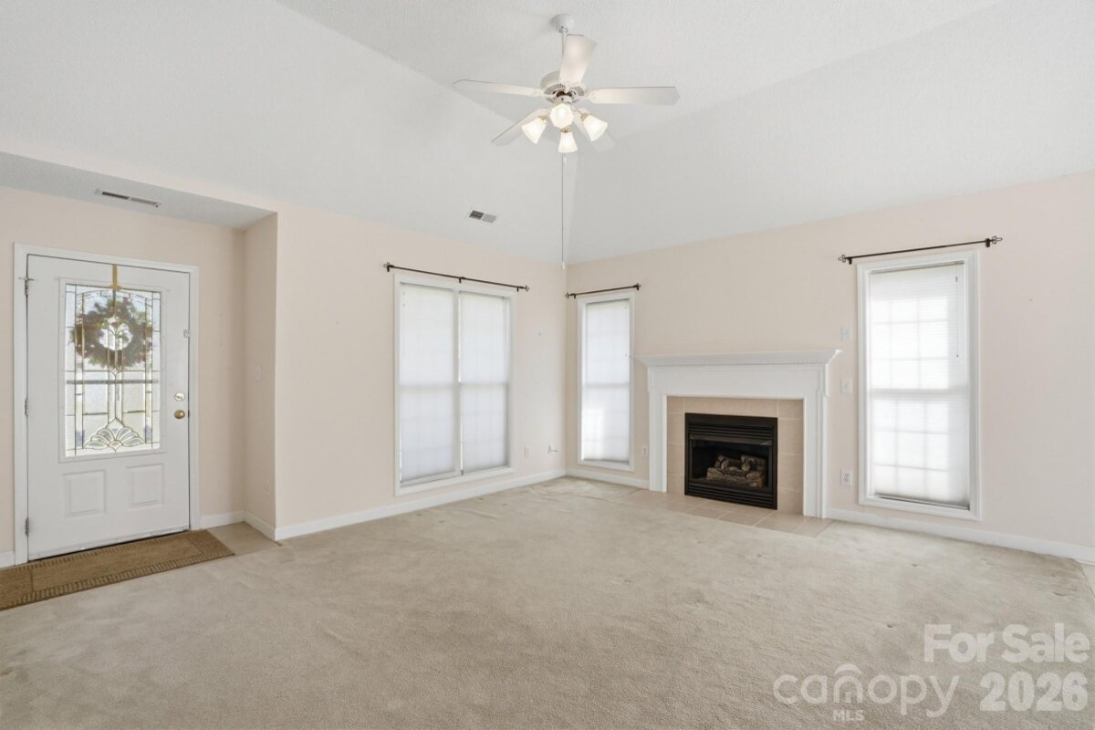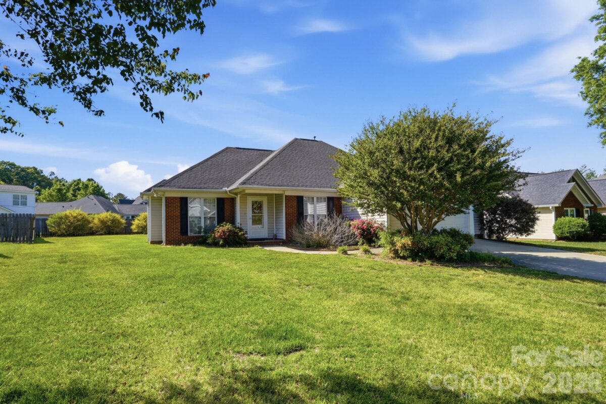 This charming ranch home, located on a quiet street, offers privacy and comfort, and it is ready for you to add your personal touches to make it your own. The home features three bedrooms and two full baths, with an open layout. The great room boasts a vaulted ceiling and a fireplace with gas logs to enjoy cozy evenings and plenty of space for entertaining. The generously sized primary suite includes a tray ceiling, a walk-in closet, and a private bath with a garden tub and separate shower. The kitchen is open to the breakfast room and will include the refrigerator. The washer and dryer will also be included, making this home truly move-in ready. The exterior includes a large partially fenced backyard with plenty of space for outdoor activities and a patio and there is an attached two-car garage. Great location just minutes from the Monroe Expressway, and the community offers walking trails and a playground.