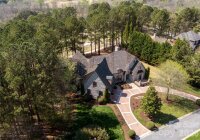 Stunning French Country Estate on three (3) combined golf course lots in prestigious Verdict Ridge, overlooking the iconic 16th Green. Natural stone exterior, brick detailing, and copper accents exude timeless charm. Wellness-focused features include an indoor HydroWorx Sports Therapy pool, Fitness Room with pro-grade flooring, Sauna, and Steam Bath - a private health retreat. Gourmet Kitchen with Viking range, stone hood, mural backsplash, wine bar with copper sink, and pass-through to golf-view Sun Room. Great Room with beamed/coffered ceilings and floor-to-ceiling stone fireplace. Main-level Primary Suite with multi-tiered tray, European-style fabric wall coverings, & private study. Expansive walk-in attic storage areas, perfect for additional bedrooms or bonus rooms (see example in attic space expansion PDF file attached). Enjoy radiant heat floors, Artisan-inspired murals, flagstone terraces, putting green, Generac whole-house standby generator (automatic backup power), natural fenced area for furry loved ones, oversized garage with golf cart bay, and whimsical playhouse in garage apartment above. A rare blend of old-world charm and modern amenities - luxury meets lifestyle.
