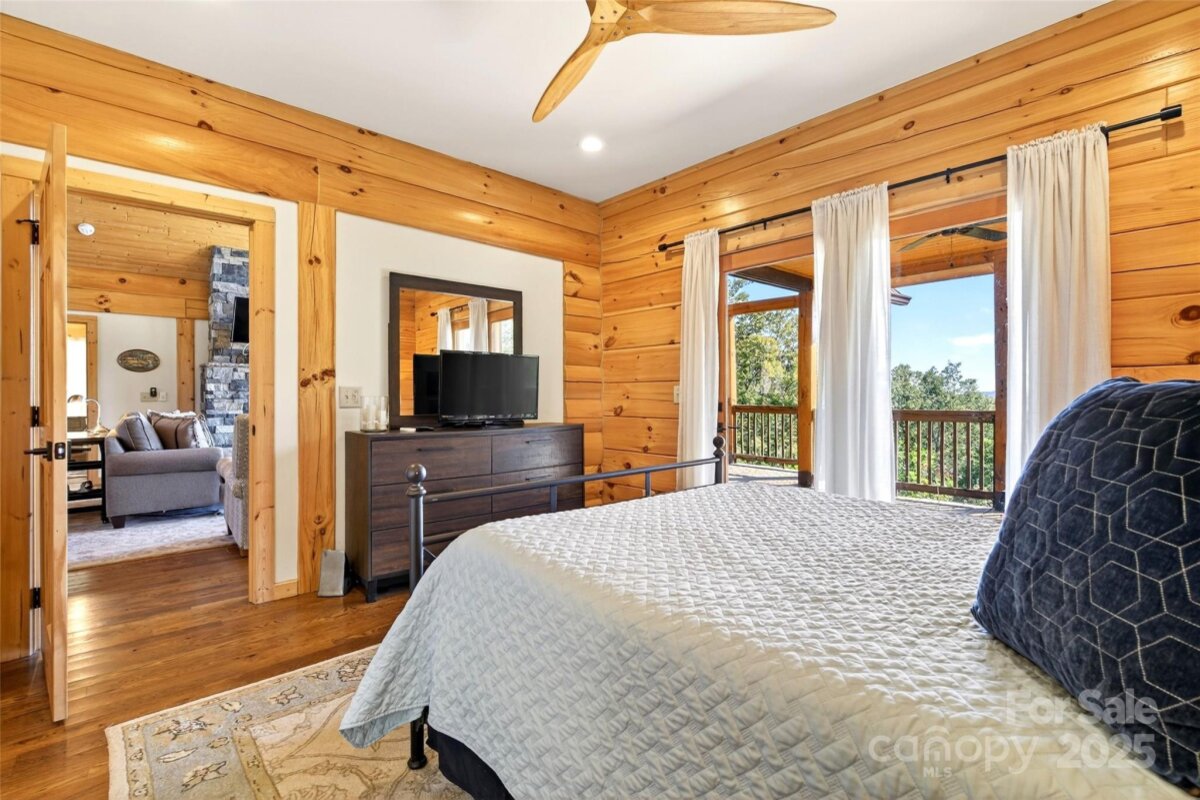 Tranquil Log Cabin Retreat with Stunning Mountain Views Nestled within the private, gated community of Grants Mountain, 1516 Mountain Crest offers the ideal blend of modern comfort, rustic charm, and year-round mountain views. This turn-key, beautifully maintained log cabin is a rare find—perfect for those seeking a full-time mountain residence or a peaceful second home. Currently a successful vacation rental! Thoughtfully designed for both relaxation and entertaining, this single-level home features three spacious en-suite bedrooms, including a primary suite with a king-sized bed, walk-in shower, and private TV. The two guest suites each offer queen beds and private baths—one with a walk-in shower and the other with a shower/tub combo. At the heart of the home is a chef’s kitchen with an eat-in dining area for six, overlooking a warm and inviting living room. Enjoy cozy nights by the gas log fireplace, unwind with your favorite streaming shows on the 55†Smart TV, or work comfortably from the dedicated remote work nook. Step outside to experience the true magic of this home: a private, covered back deck with unobstructed views of the Blue Ridge Mountains. Featuring two classic porch swings, outdoor dining space, and a gas grill, it's an ideal setting for enjoying every season. Just off the deck is a charming wood-burning fire pit, perfect for stargazing and storytelling under the certified dark skies of Grants Mountain—a designated IDA (International Dark Sky) community. A large two-car garage adds even more functionality, offering ample space for parking, extra storage, or a workshop area—a rare and valuable feature for mountain living. The property offers a unique combination of privacy, natural beauty, and convenience. Located just 15 minutes from downtown Marion, I-40, and local amenities like Walmart Supercenter, you're never far from everything you need. For outdoor adventurers and day-trippers, the home is centrally located to some of Western North Carolina’s most scenic and beloved destinations.