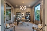 With over 7,200 square feet of heated living space, this stunning TRUE MODERN, Frank Smith–designed home offers a rare opportunity to live in a work of art overlooking the 7-acre lake at Freedom Park. Designed to embrace an outdoor lifestyle, this residence is pure luxury. The exterior features of this Modern Luxury include surround sound, a mounted TV under a covered back patio with remote-controlled shades, and a complete security system with 6 cameras plus remote controls for everything from indoor/outdoor fireplaces to exterior walls that disappear at the touch of a button. Throughout the home, you’ll find 10†wide engineered wood floors, sliding glass walls opening to a side-yard with outdoor living area, heated pool, putting green, and built-in grill & pizza oven. The custom Hans Krug kitchen features a concrete island, high-end Miele appliances, and a hidden scullery. The owner’s suite boasts a massive custom closet, spa-like bath with heated floors, a TV mirror, wet room, private laundry, and hand-selected marble finishes. Additional highlights include a full home theater, sauna, gated driveway, and 4-car garage. Unique features set this home apart: a custom fish tank with a striking Charlotte skyline centerpiece, and a detached living quarters below the garage that has been transformed into the ultimate man cave, perfect for entertaining, watching the game, or escaping for a private retreat.