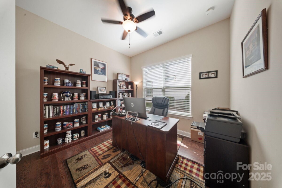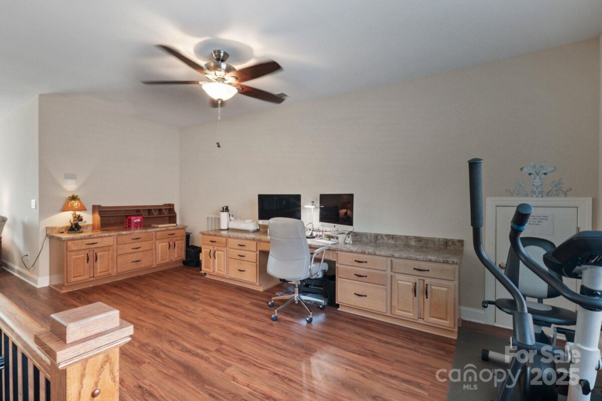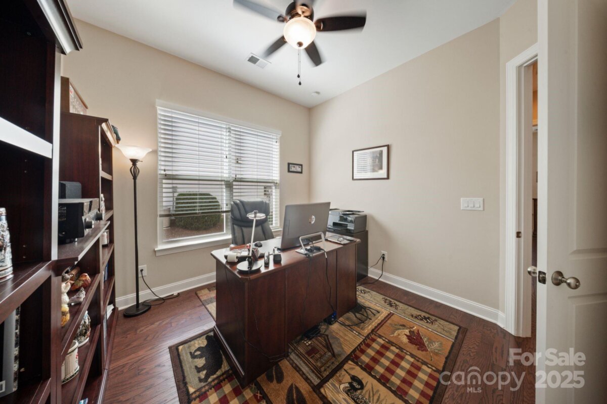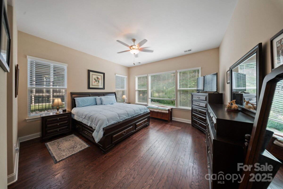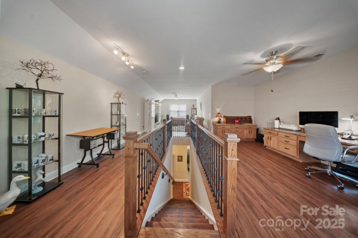 Beautifully maintained Ramsey/Loft model located on an established cul-de-sac street just steps from the clubhouse, gym, on-site restaurant, pool, pickleball courts, and concert stage. This home truly has it all—soaring 10-foot ceilings, rounded corners, and James Hardie siding for low-maintenance living. Inside, you’ll find hardwood floors throughout, custom primary bedroom closets, and a bright open layout designed for everyday comfort and entertaining. The upstairs loft is a showstopper—perfect for a massive crafting room, media lounge, or man cave—with a custom built-in desk/work area, plus an oversized walk-in storage area to keep everything organized. Outdoor living shines here too with a large covered screened-in porch that overlooks the private wooded backyard, ideal for relaxing or hosting friends. Additional features include surround sound with outdoor speakers, an HVAC air scrubber for clean indoor air, LeafGuard gutters, added cabinetry in the laundry room with utility sink, shelf storage in the garage, and natural gas hookup for patio grilling. This is your chance to enjoy resort-style living in a vibrant, active community where neighbors become friends and every day feels like vacation. Move-in ready and waiting for you to enjoy the good life—book your showing today! Full time activities director on staff, Gym, Indoor pool, locker, Art studio, Event Center, Pool, & Game room 5 miles of walking and biking trails. Lake Norman is 5 minutes away.